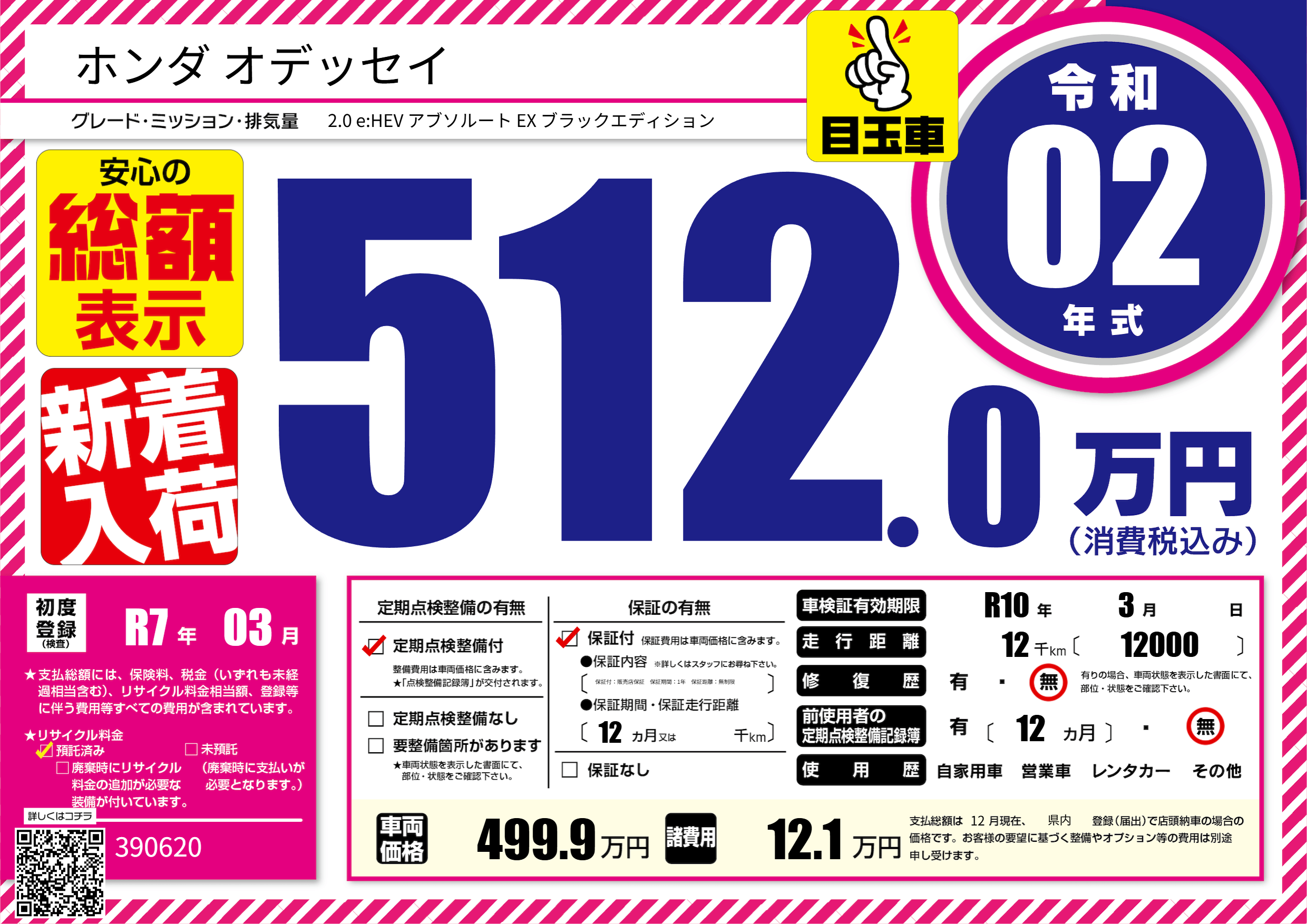 | 走行キロ | 1.2万km | 初年度登録 | R7年03月 |