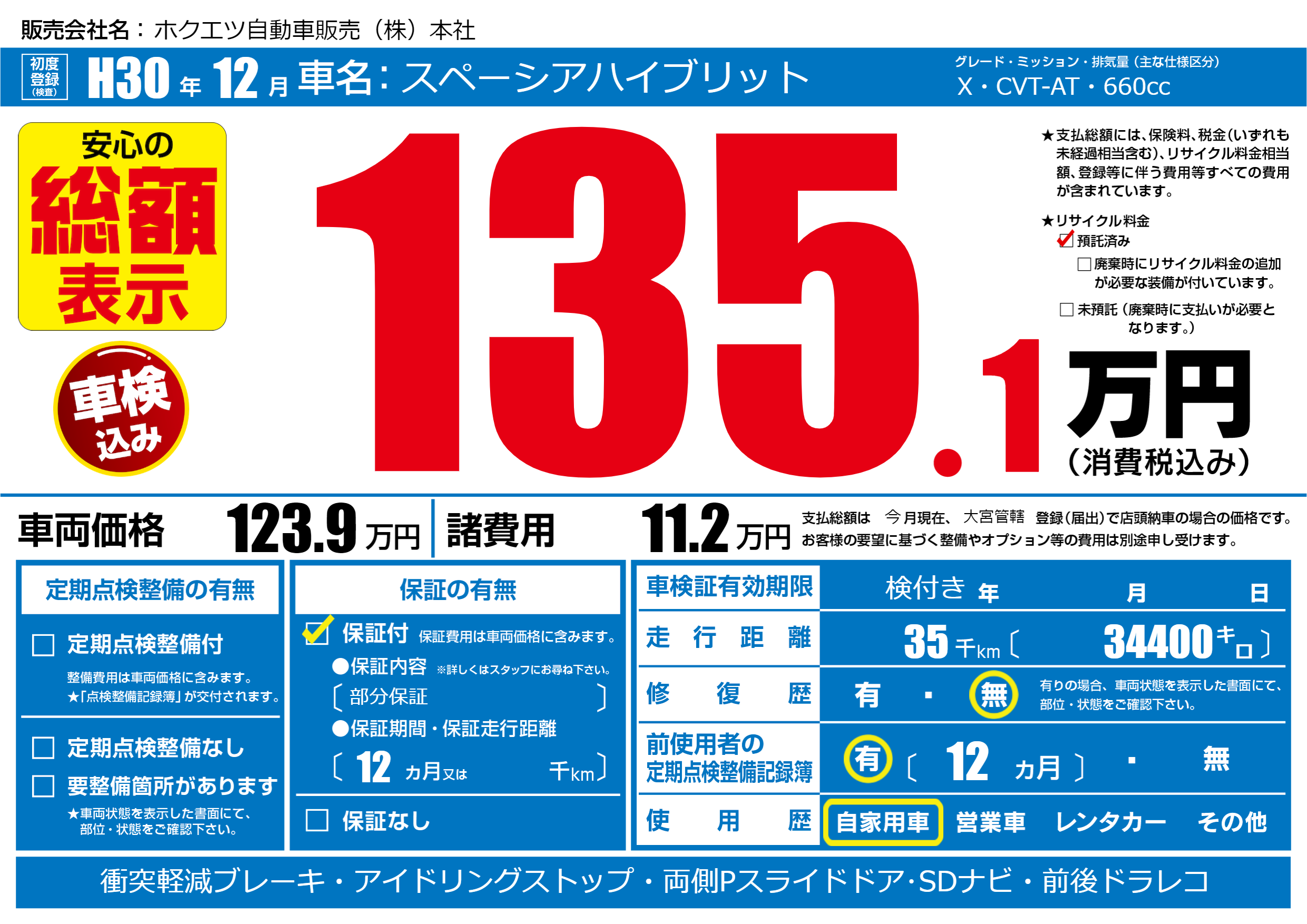 | 初年度登録 | H30年12月 | ||