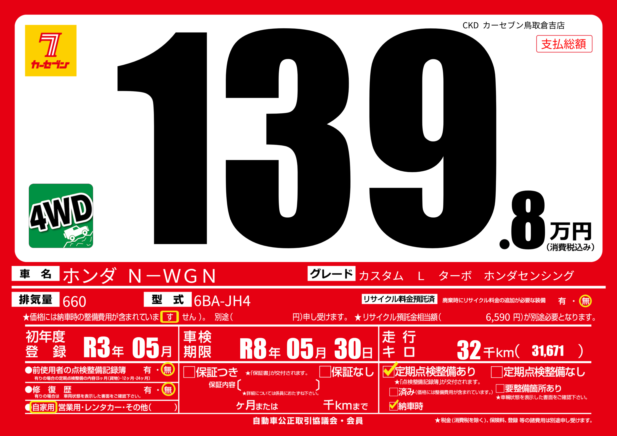 | 車検制限 | R8年 05月 30日 | ||