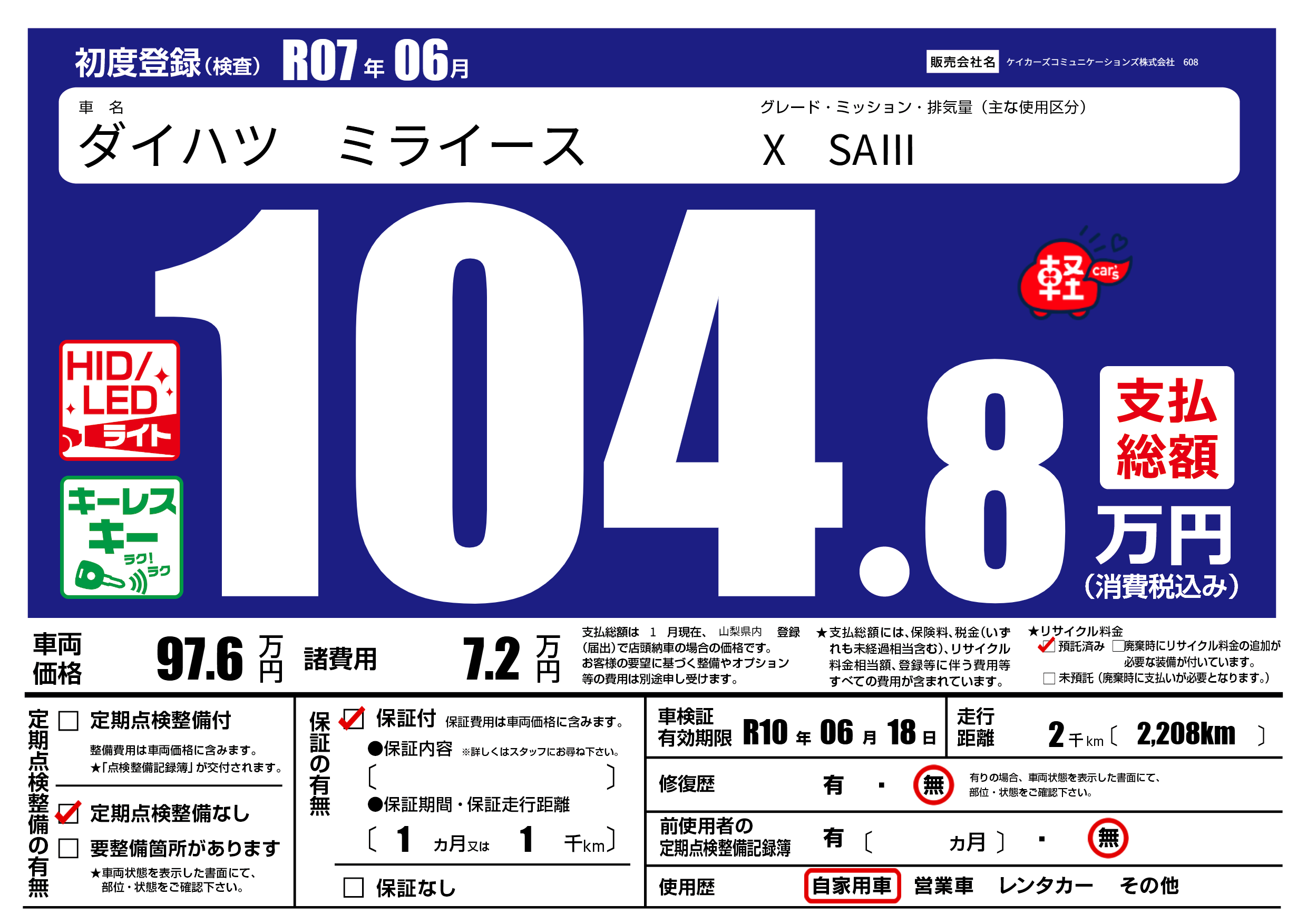 なし | 車検制限 | R10年06月18月 |