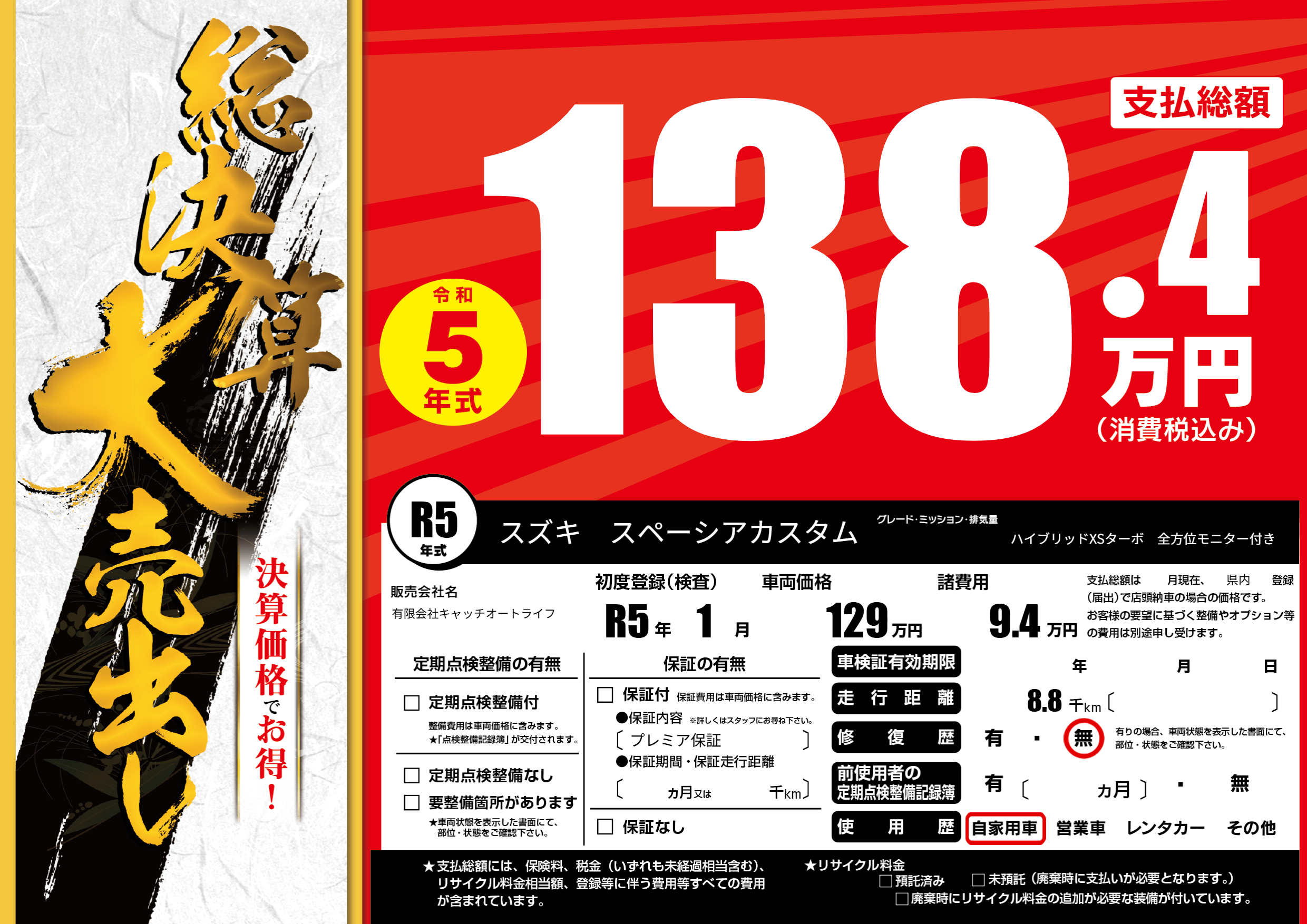 | 走行キロ | 0.8万km | 初年度登録 | R5年1月 |