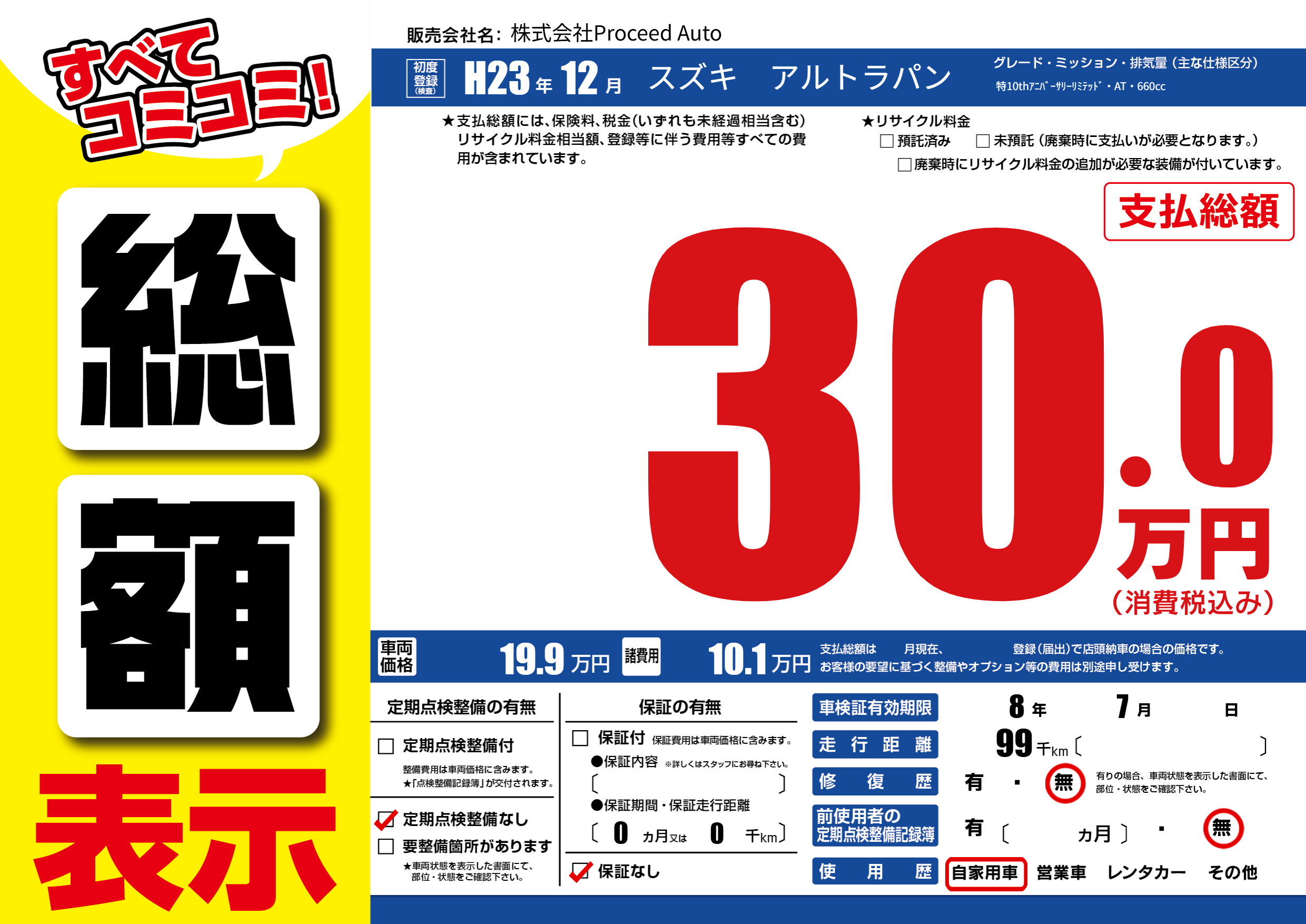 | 走行キロ | 9.9万km | 初年度登録 | H23年12月 |