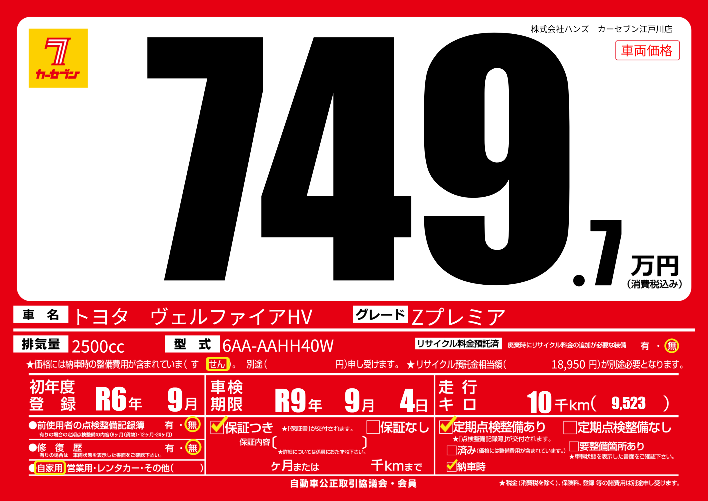 なし | 車検制限 | R9年9月4月 |