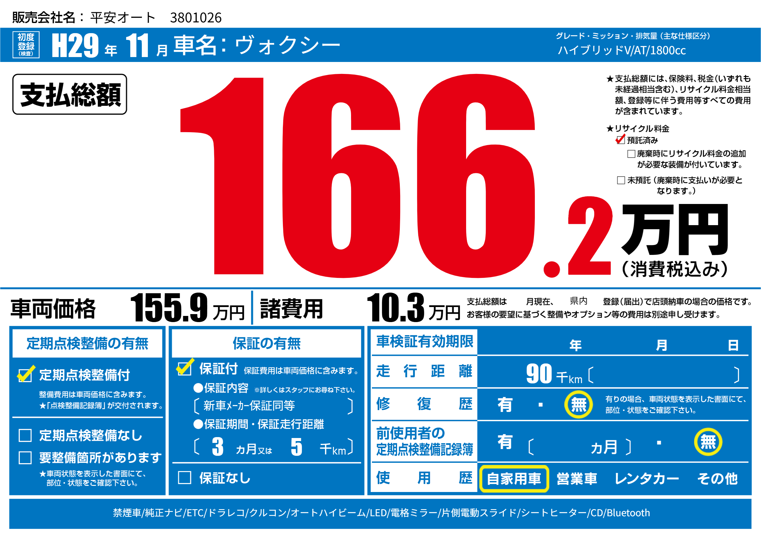 | 走行キロ | 9万km | 初年度登録 | H29年11月 |