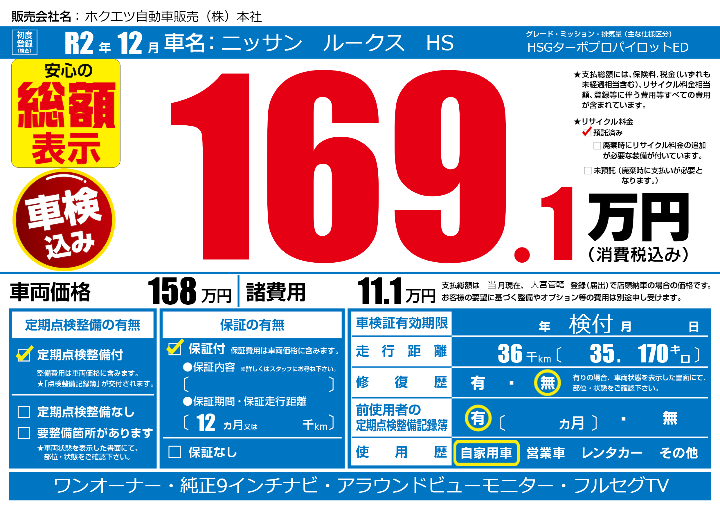| 定期点検整備 | 定期点検整備あり | ||