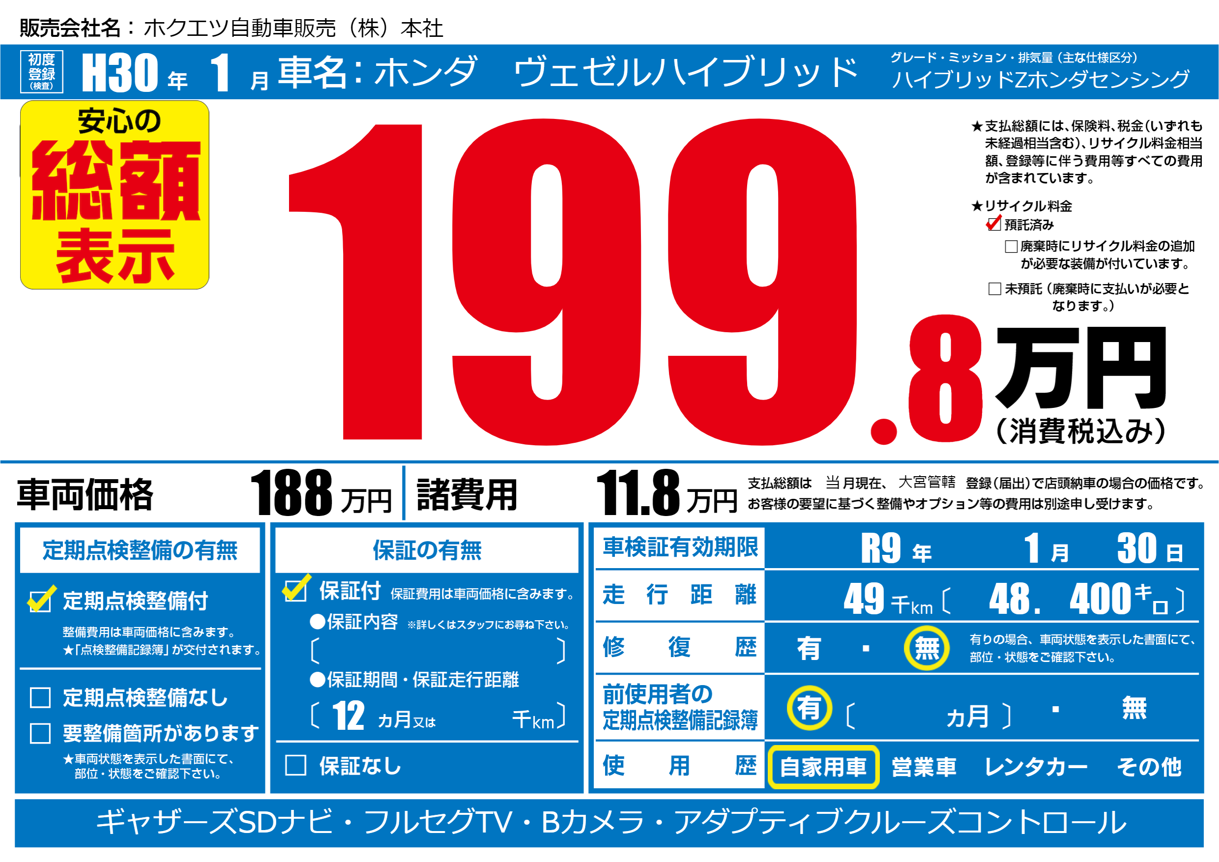 なし | 車検制限 | R9年1月30月 |
