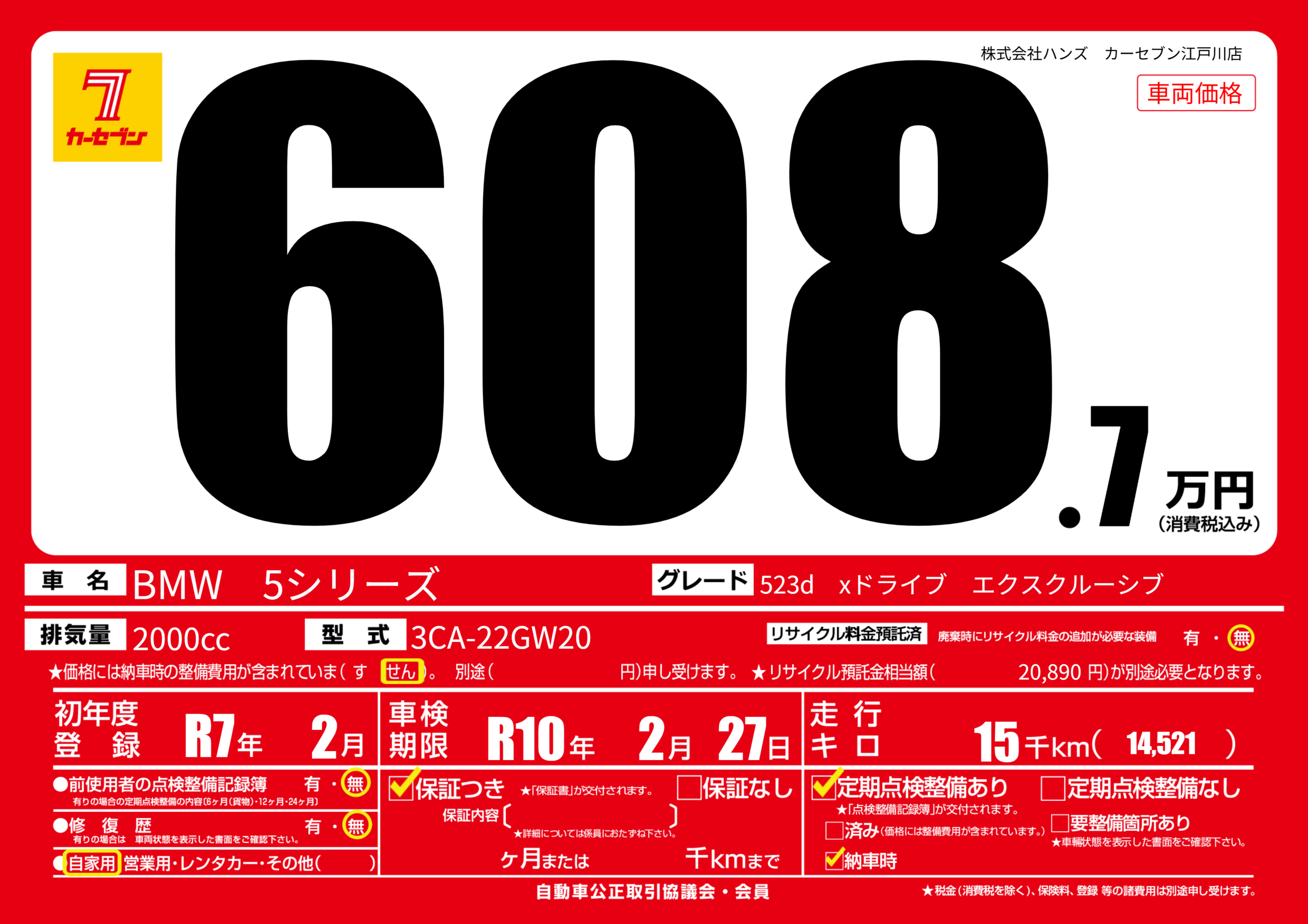 | 初年度登録 | R7年2月 | ||