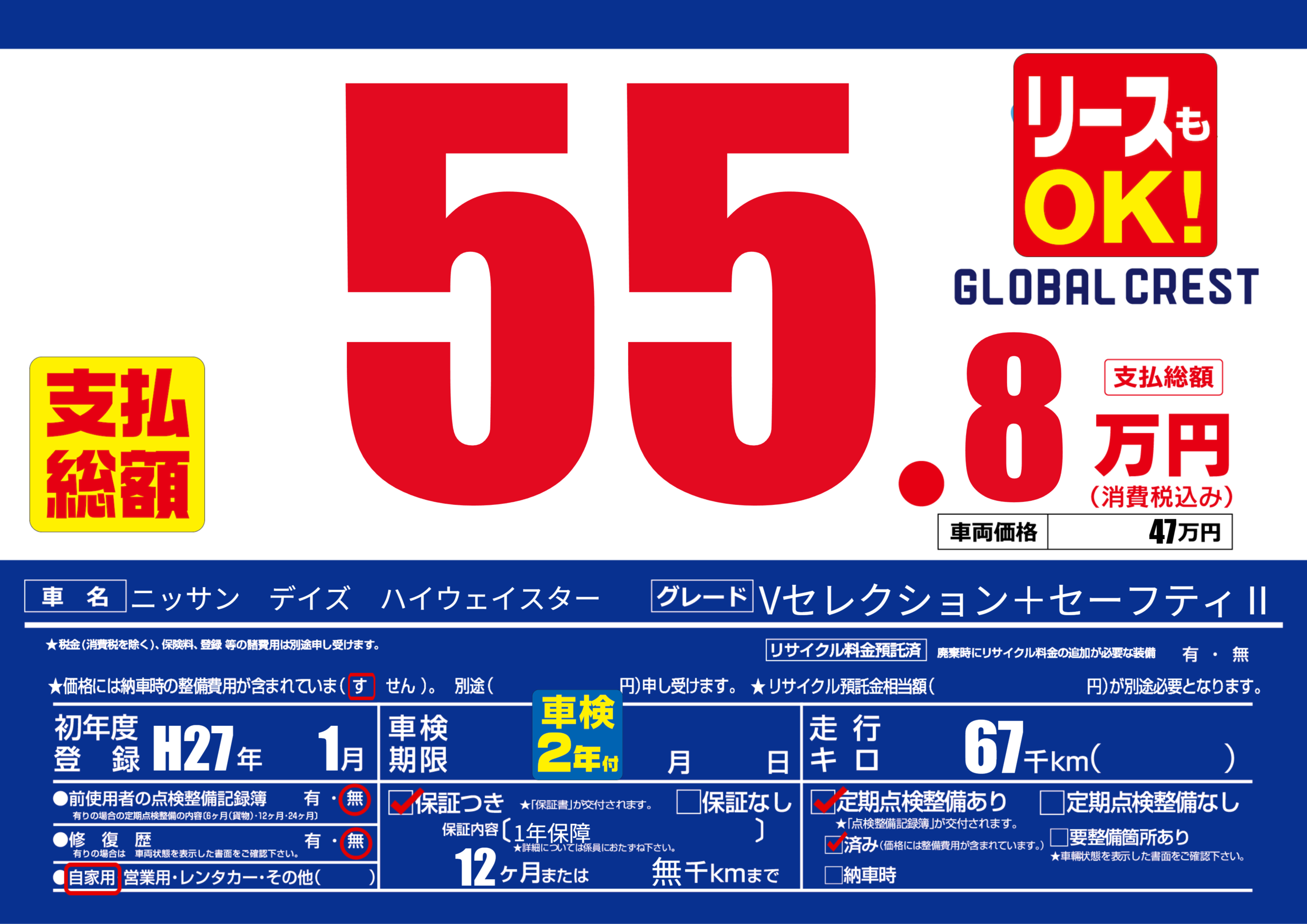 | 定期点検整備 | 定期点検整備あり 定期点検整備済み | ||