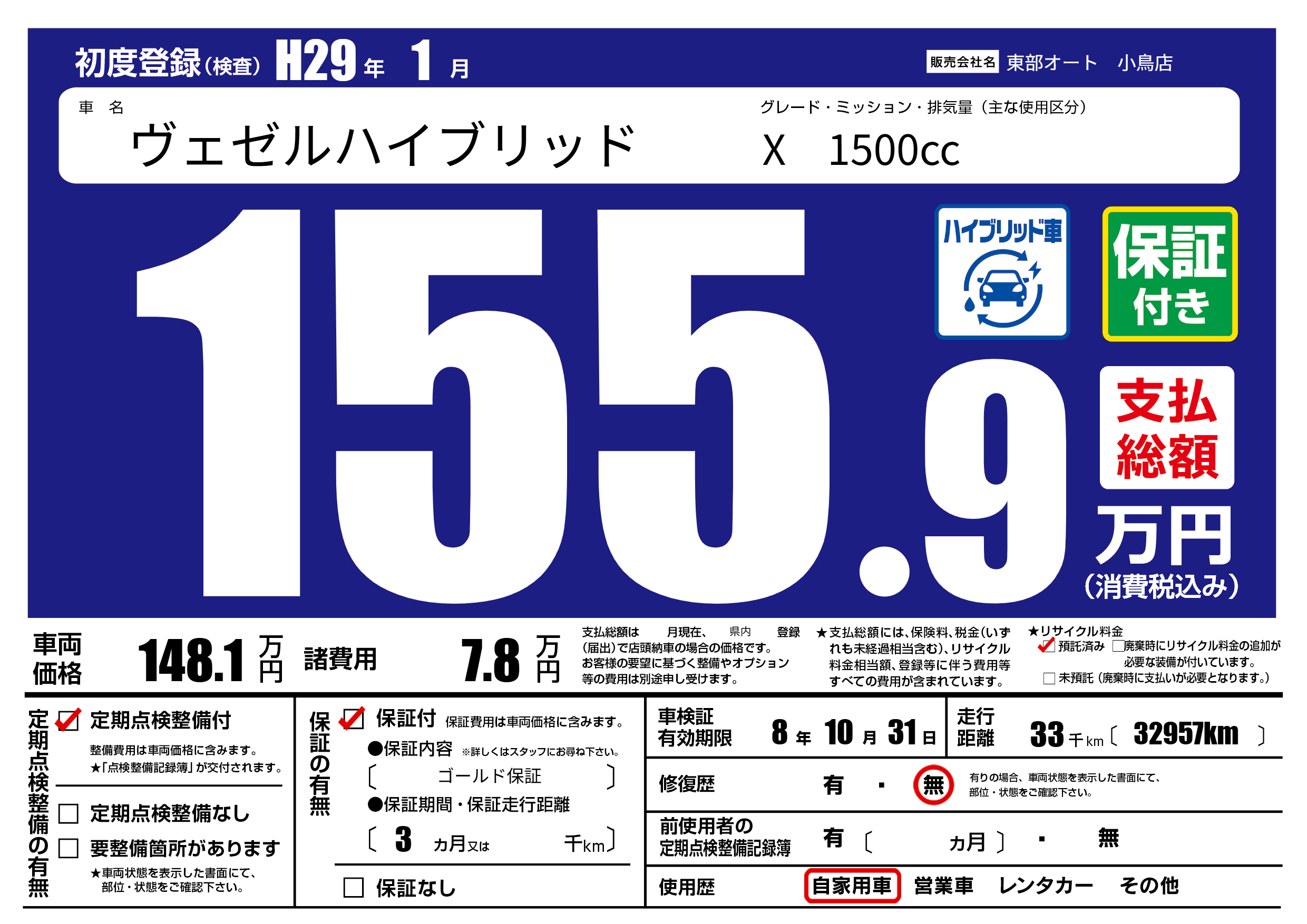 | 車検制限 | 8年 10月 31日 | ||