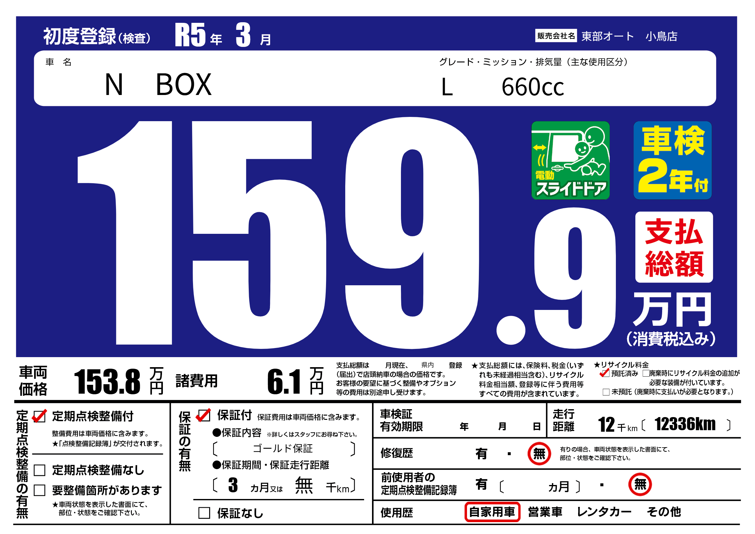 | 定期点検整備 | 定期点検整備あり | ||