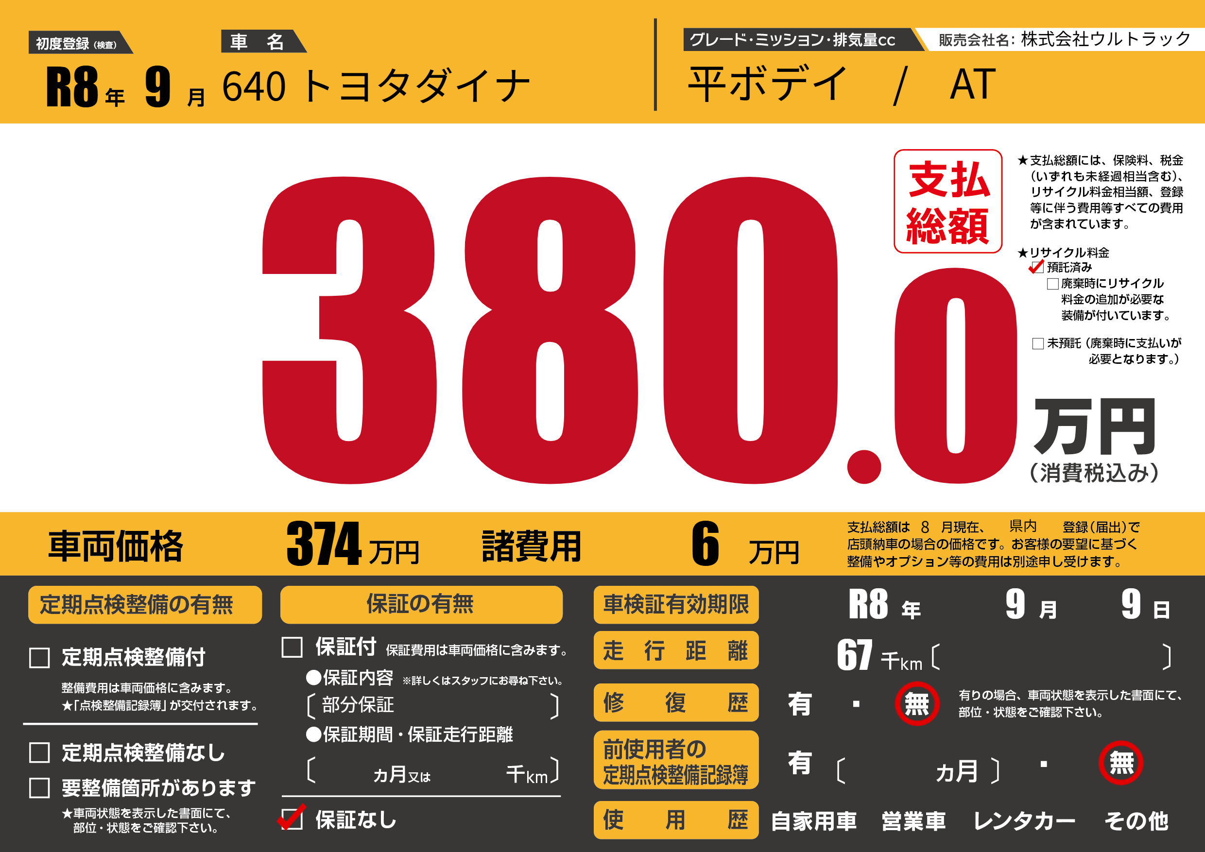 | 車検制限 | R8年 9月 9日 | ||