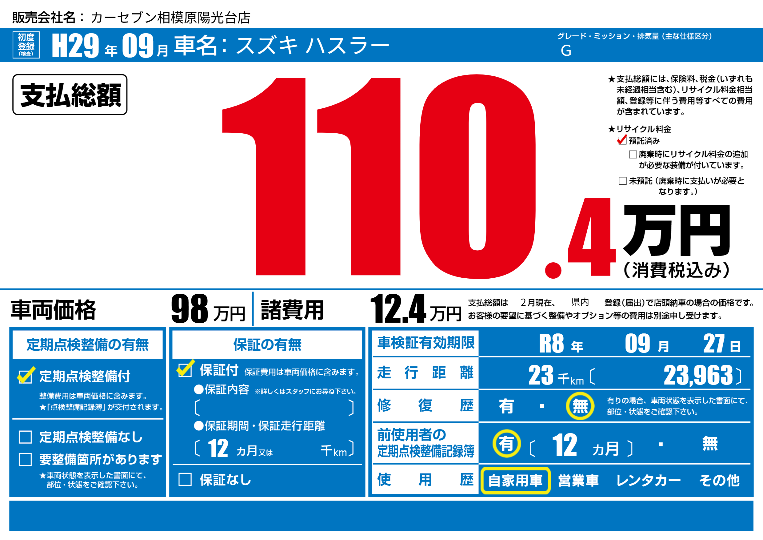 | 車検制限 | R8年 09月 27日 | ||