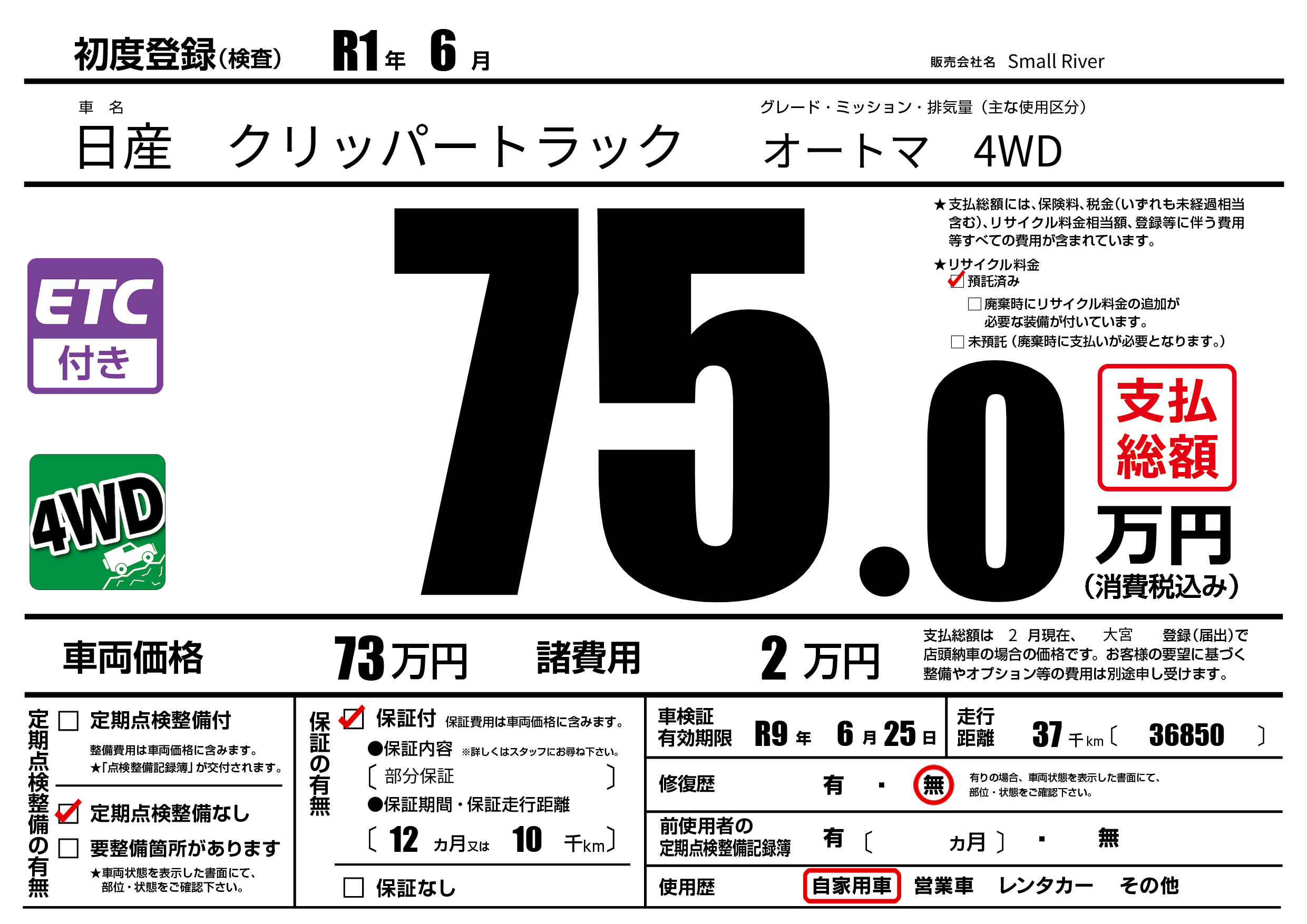 | 車検制限 | R9年 6月 25日 | ||