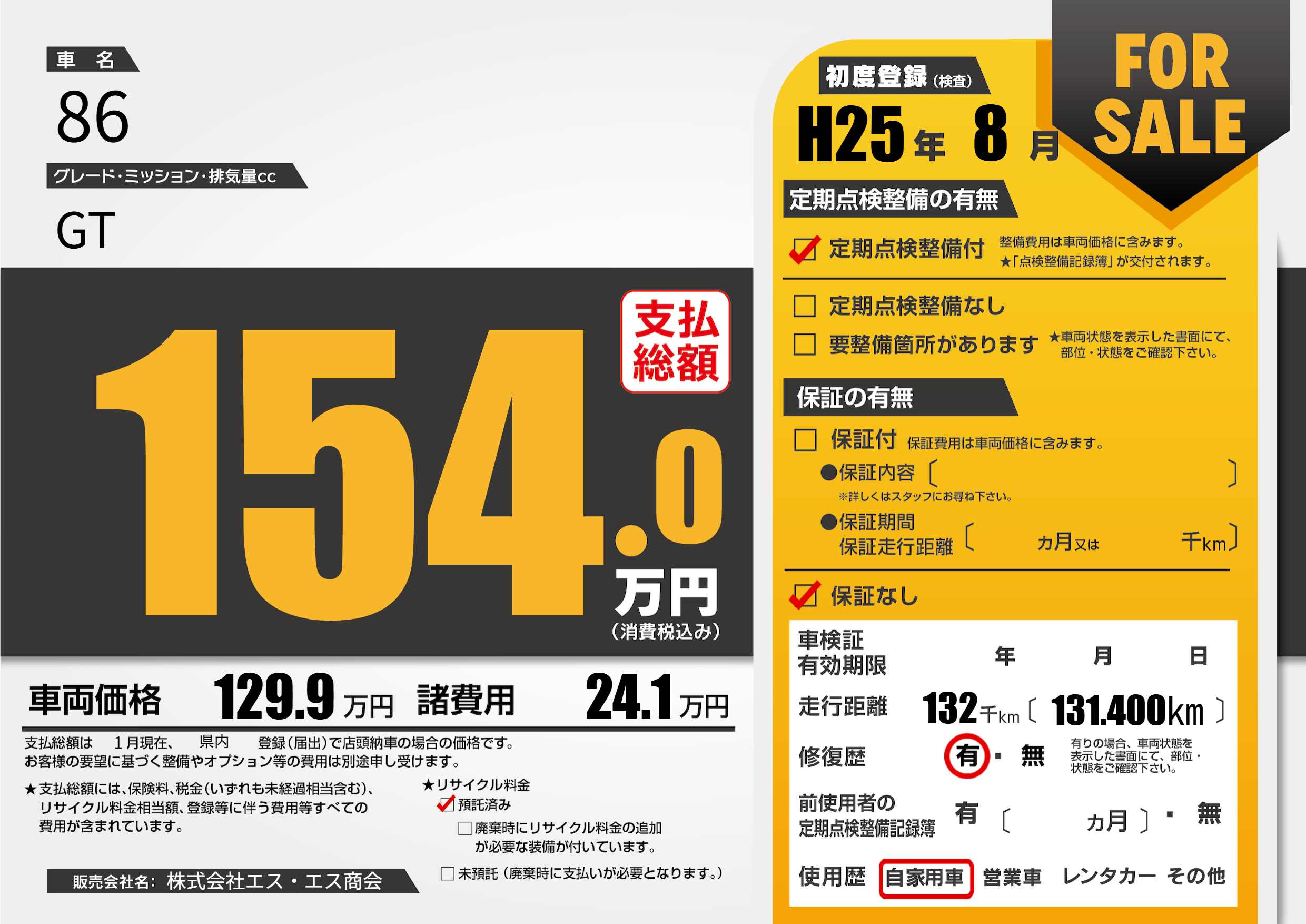 | 初年度登録 | H25年8月 | ||