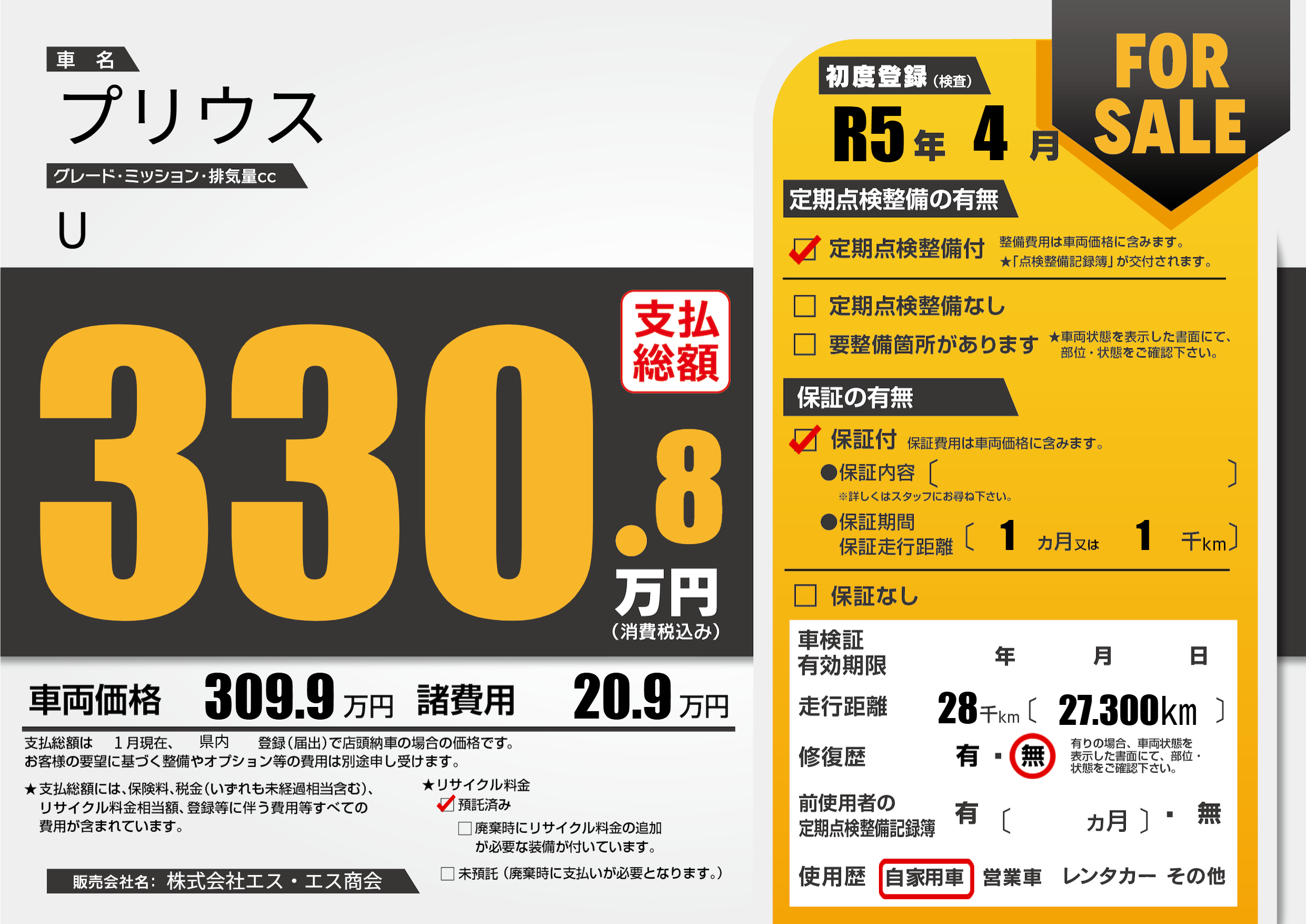 | 走行キロ | 2.8万km | 初年度登録 | R5年4月 |