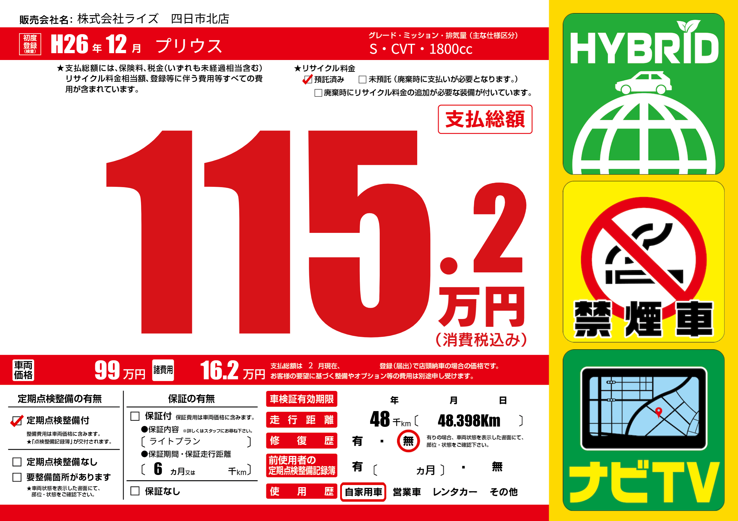 | 走行キロ | 4.8万km | ||