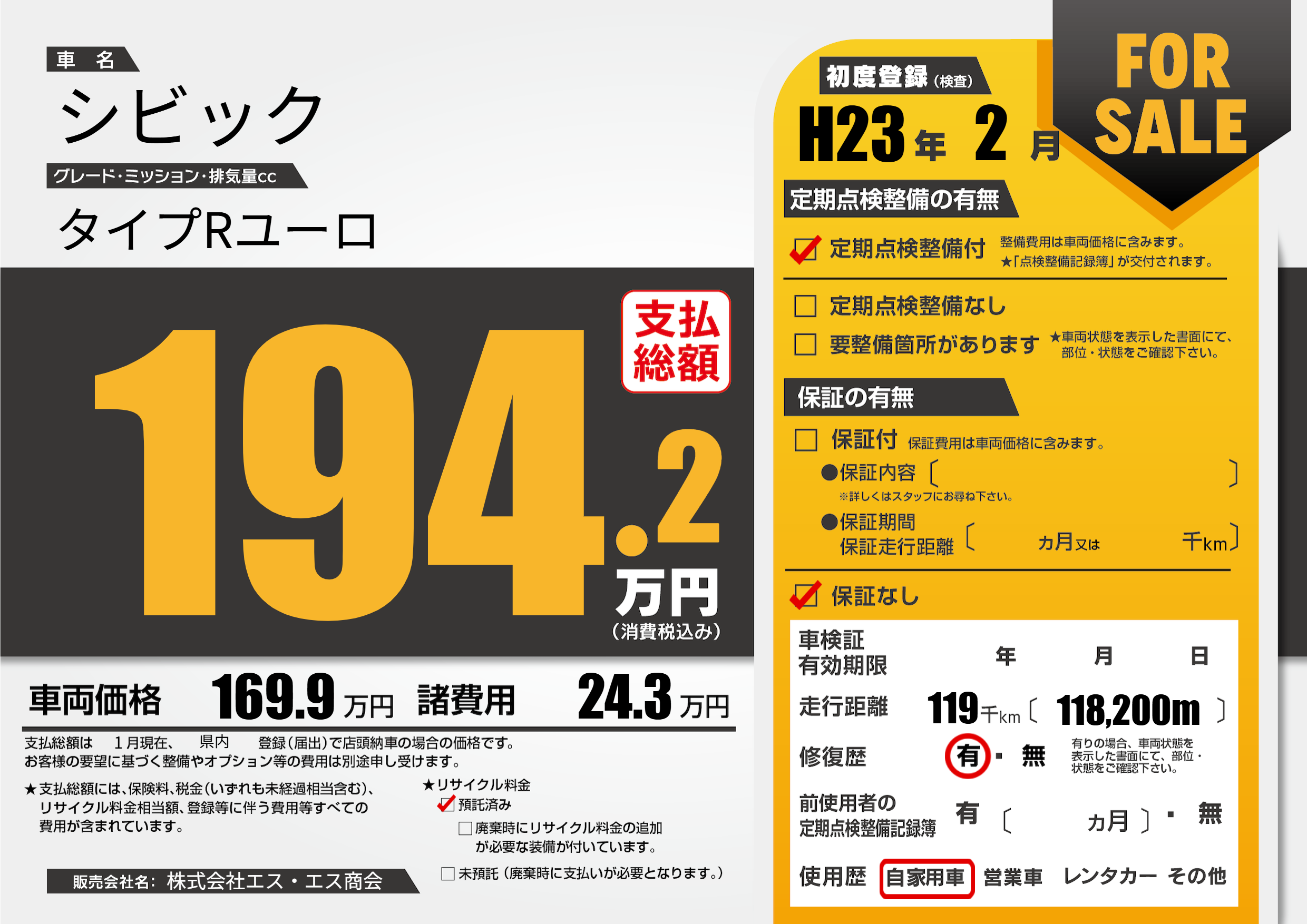 | 定期点検整備 | 定期点検整備あり | ||
