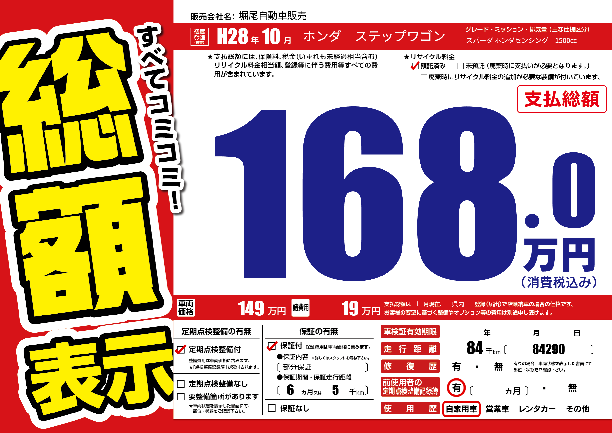 | 車名 | ホンダ ステップワゴン | グレード ミッション 排気量 |