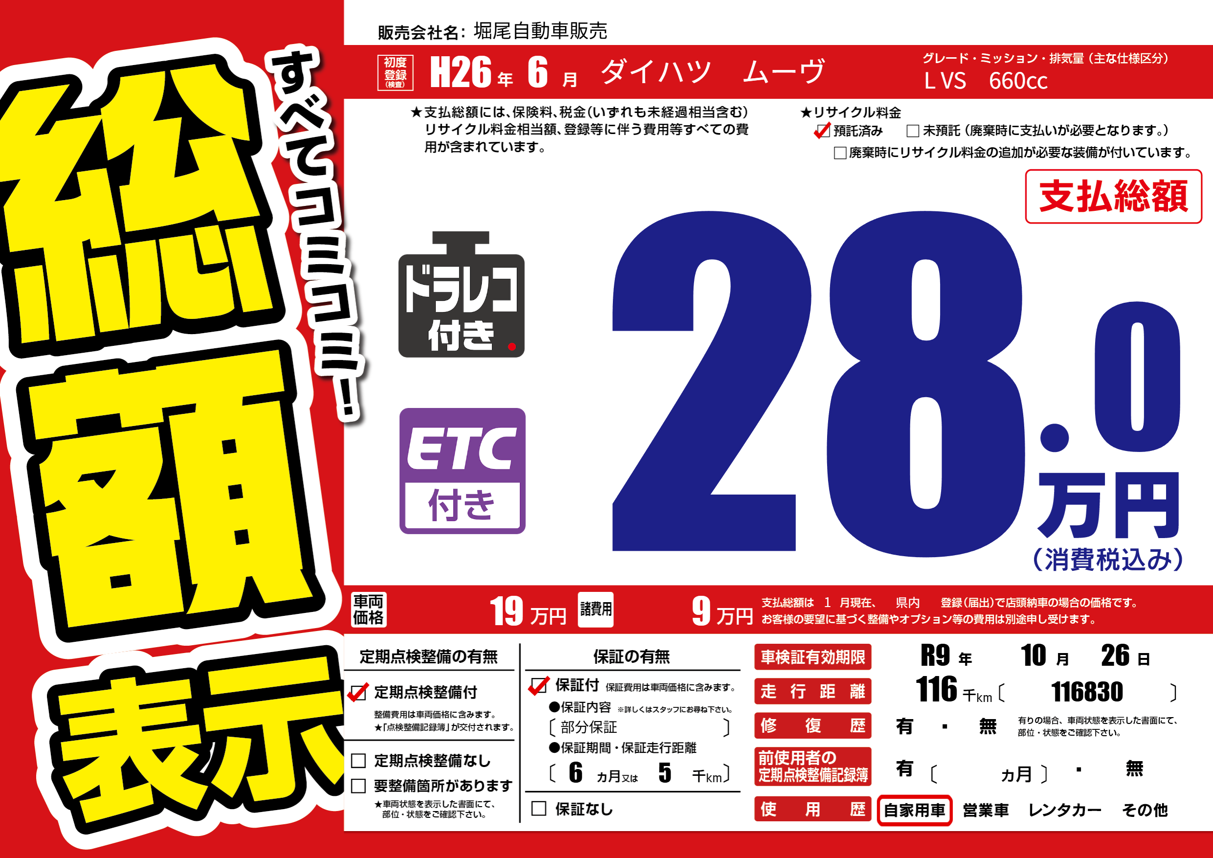 なし | 車検制限 | R9年10月26月 |