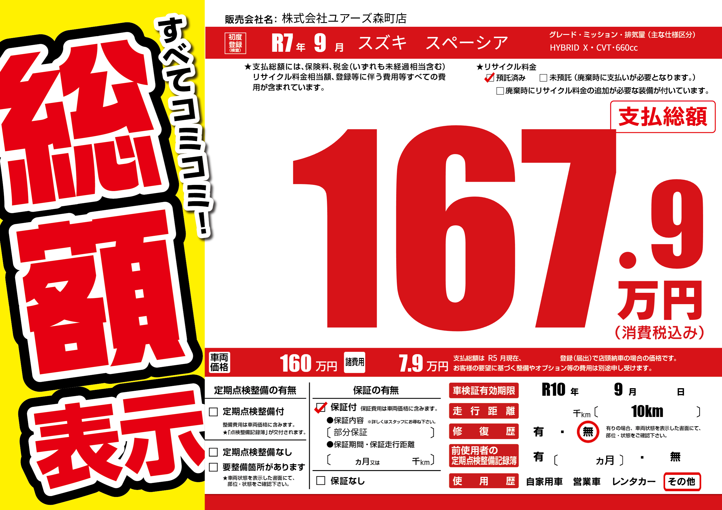| 走行キロ | - | 初年度登録 | R7年9月 |