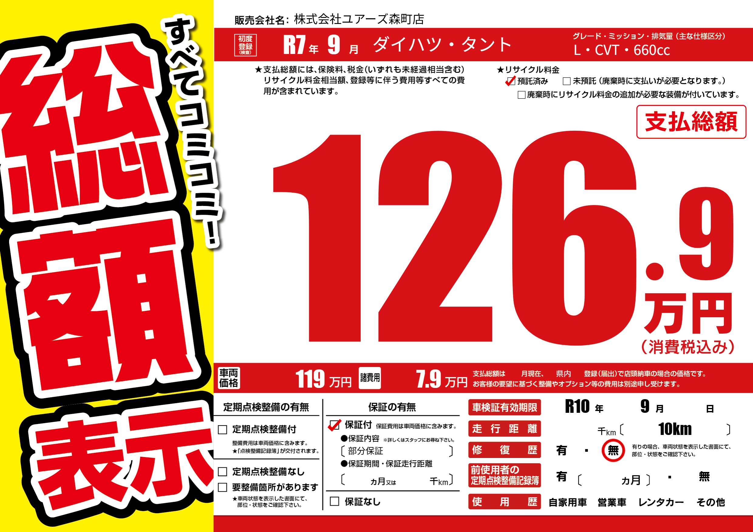 なし | 車検制限 | R10年9月---月 |
