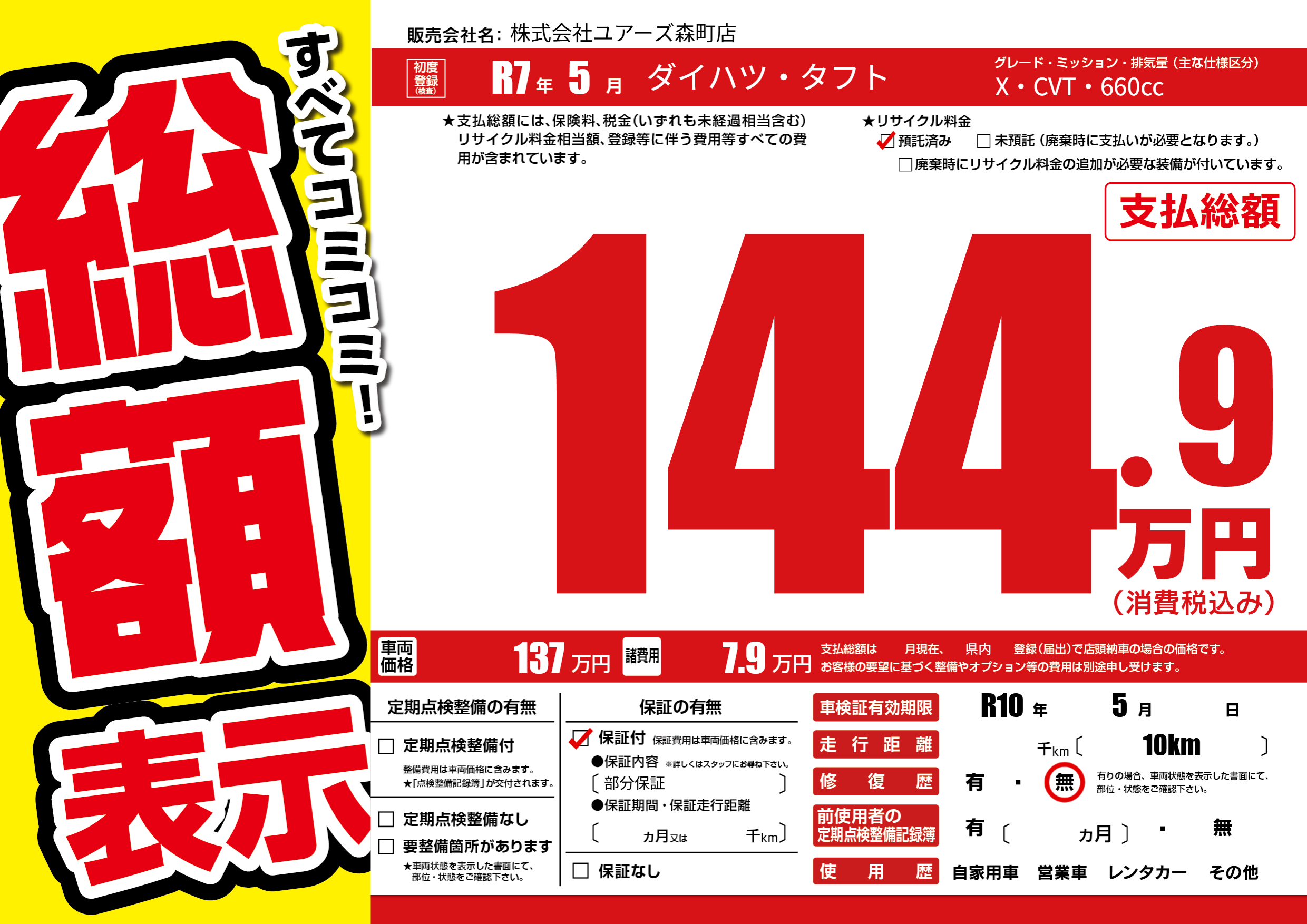 なし | 車検制限 | R10年5月---月 |