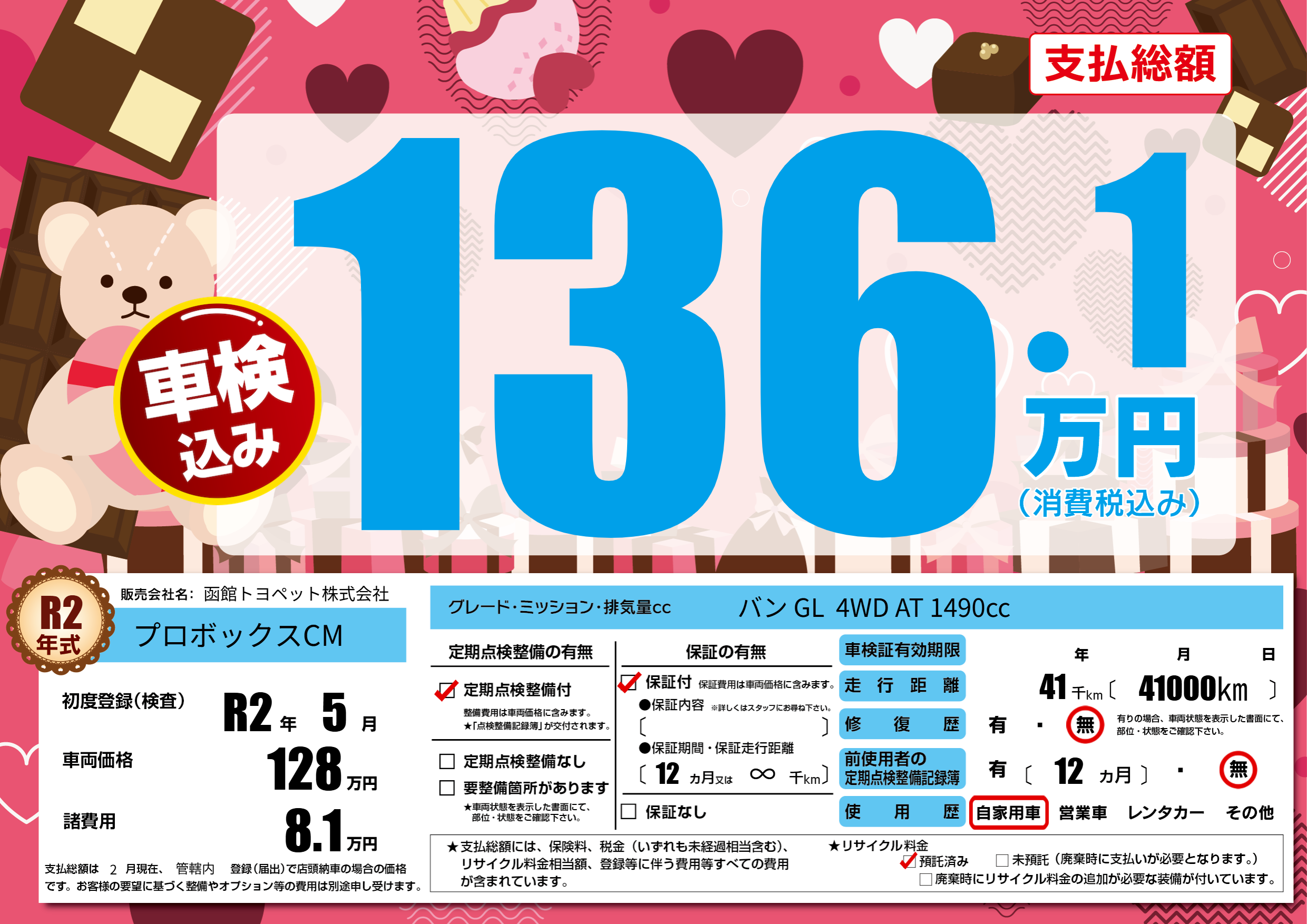 | 車名 | プロボックスCM | グレード ミッション 排気量 |