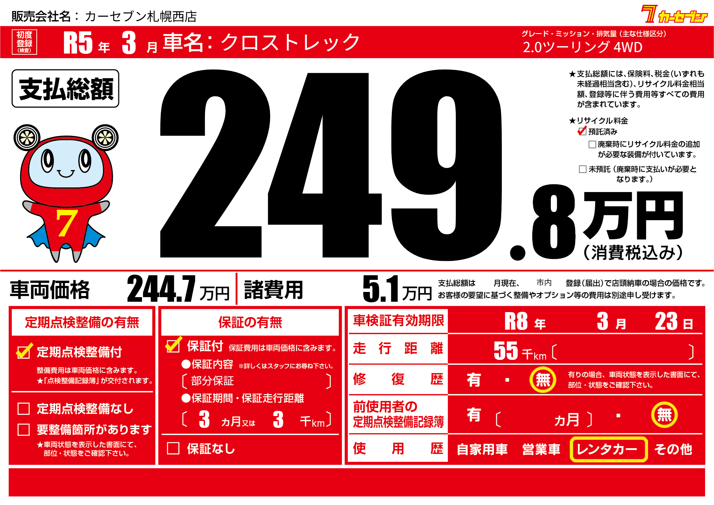| 車検制限 | R8年 3月 23日 | ||