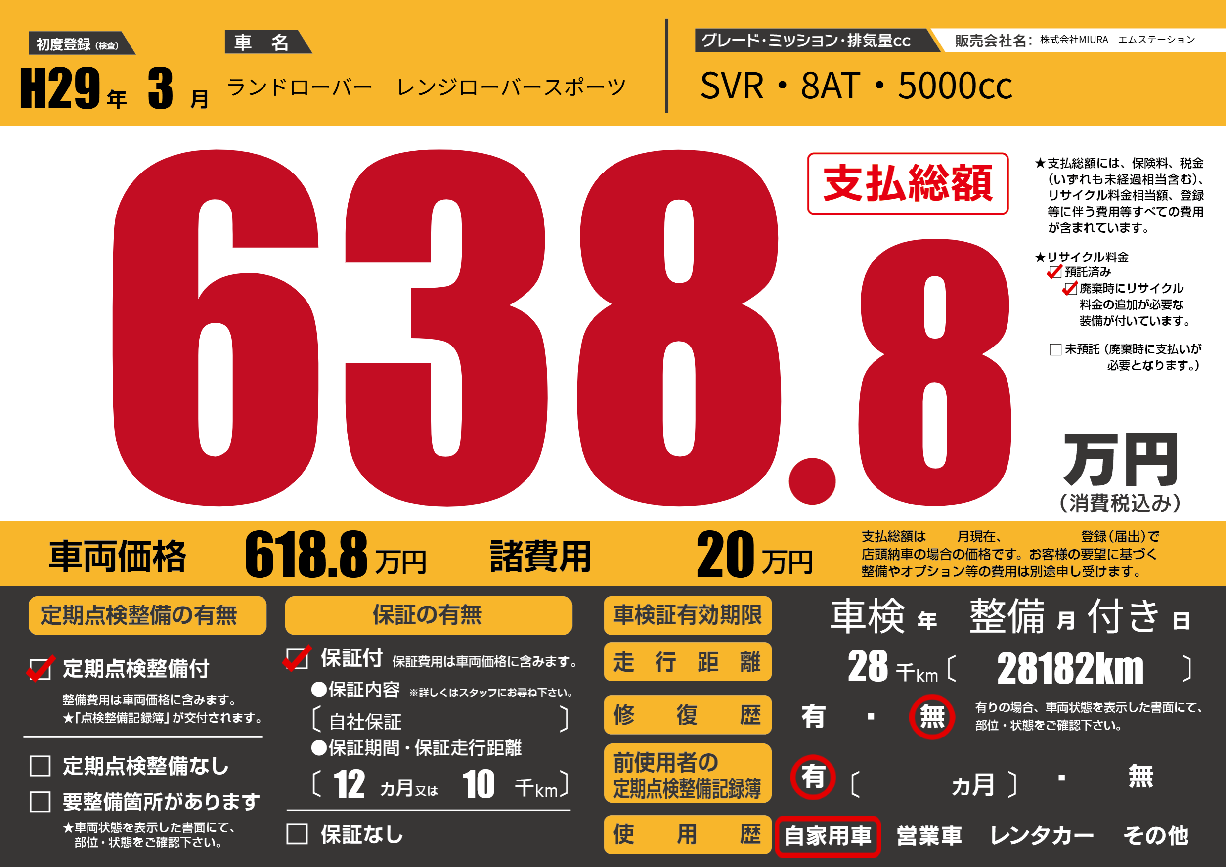 | 車名 | ランドローバー レンジローバースポーツ | グレード ミッション 排気量 |
