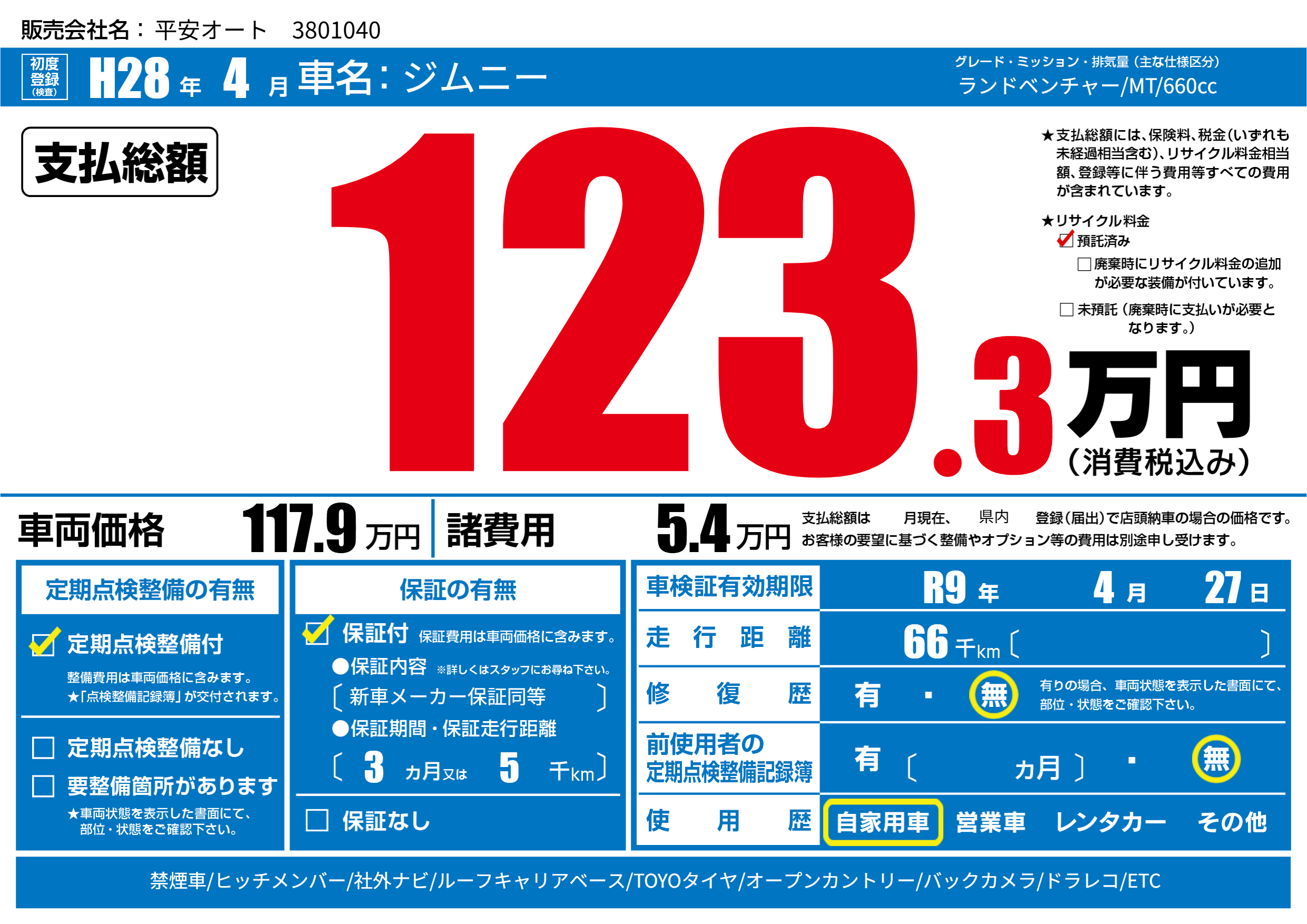 なし | 車検制限 | R9年4月27月 |