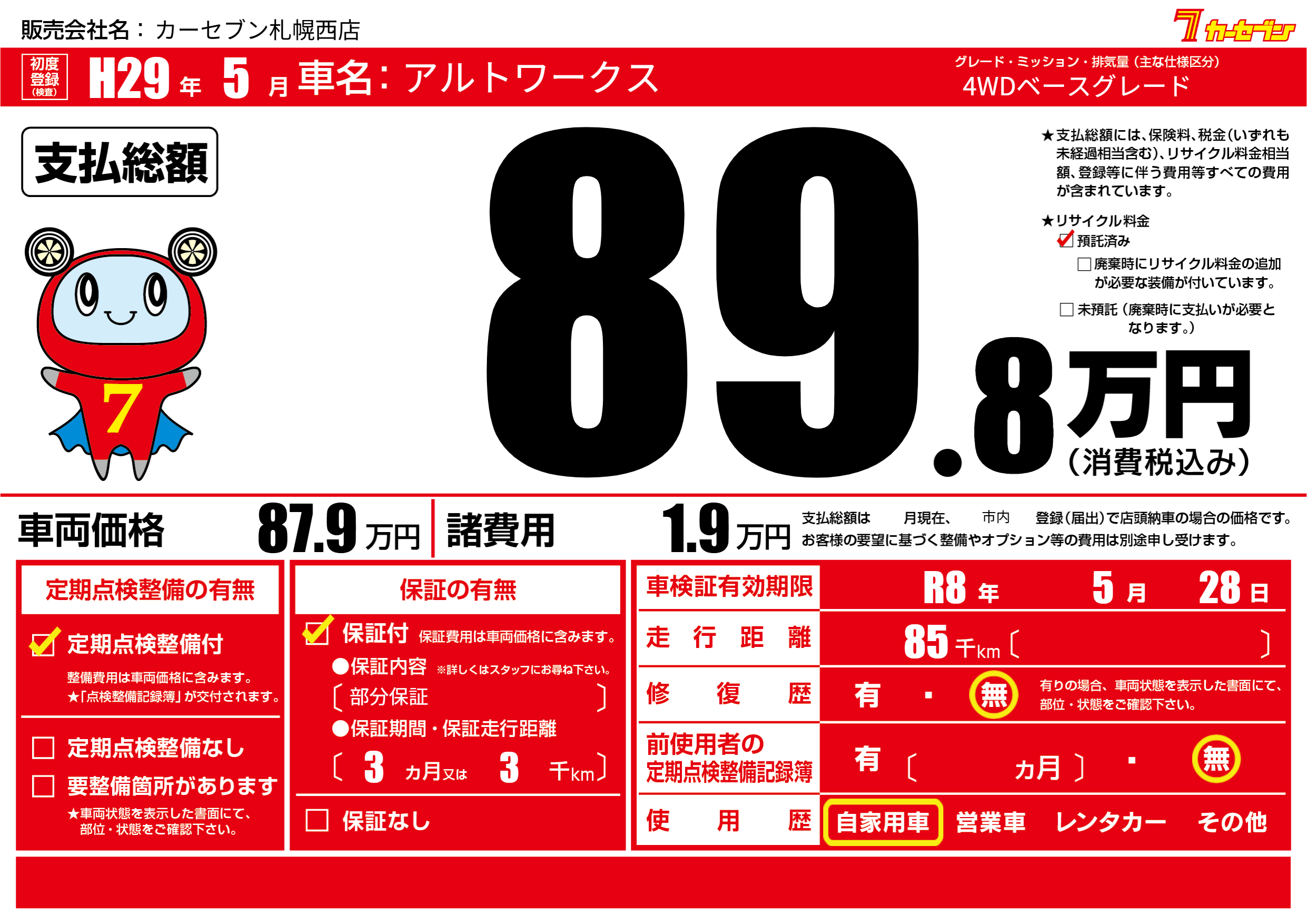 なし | 車検制限 | R8年5月28月 |