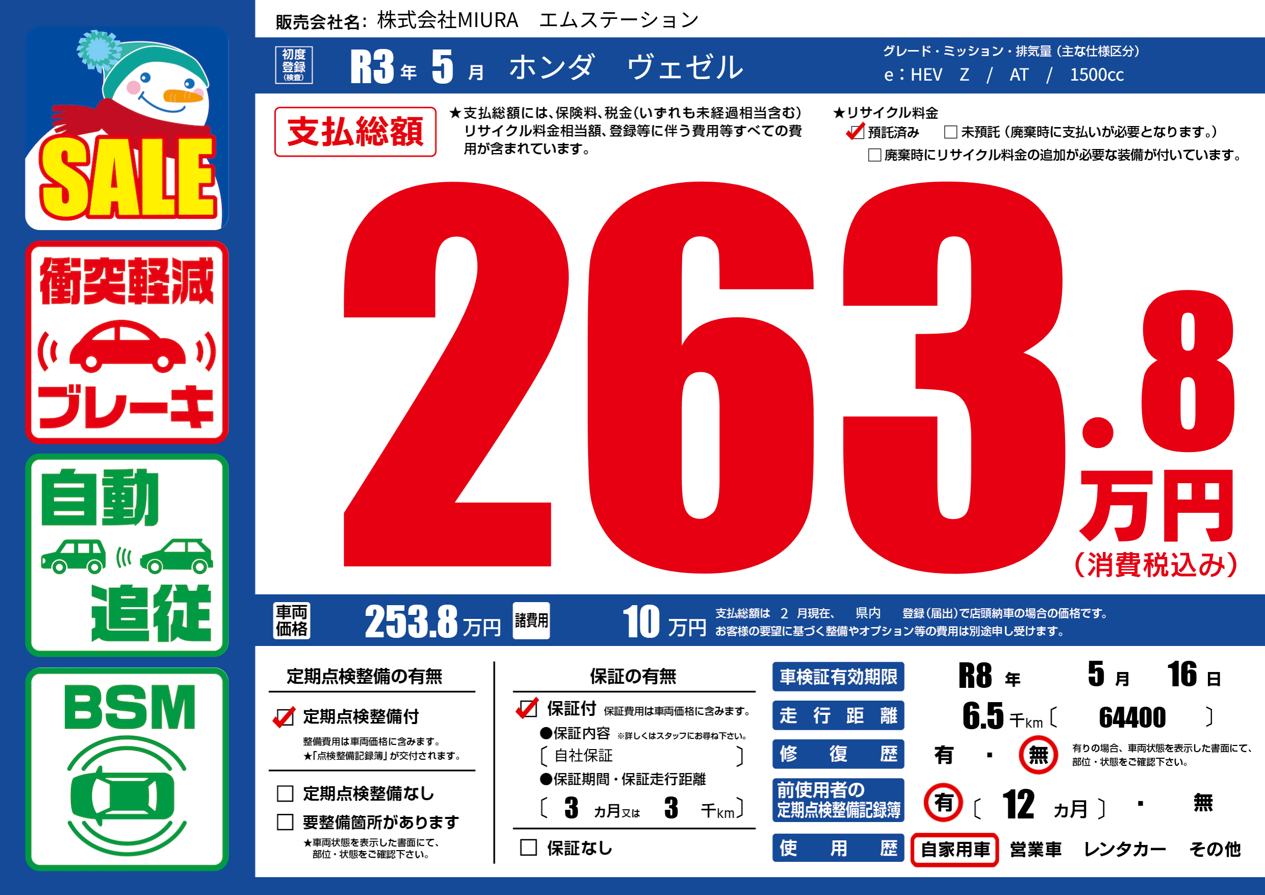 | 走行キロ | 0.6万km | 初年度登録 | R3年5月 |