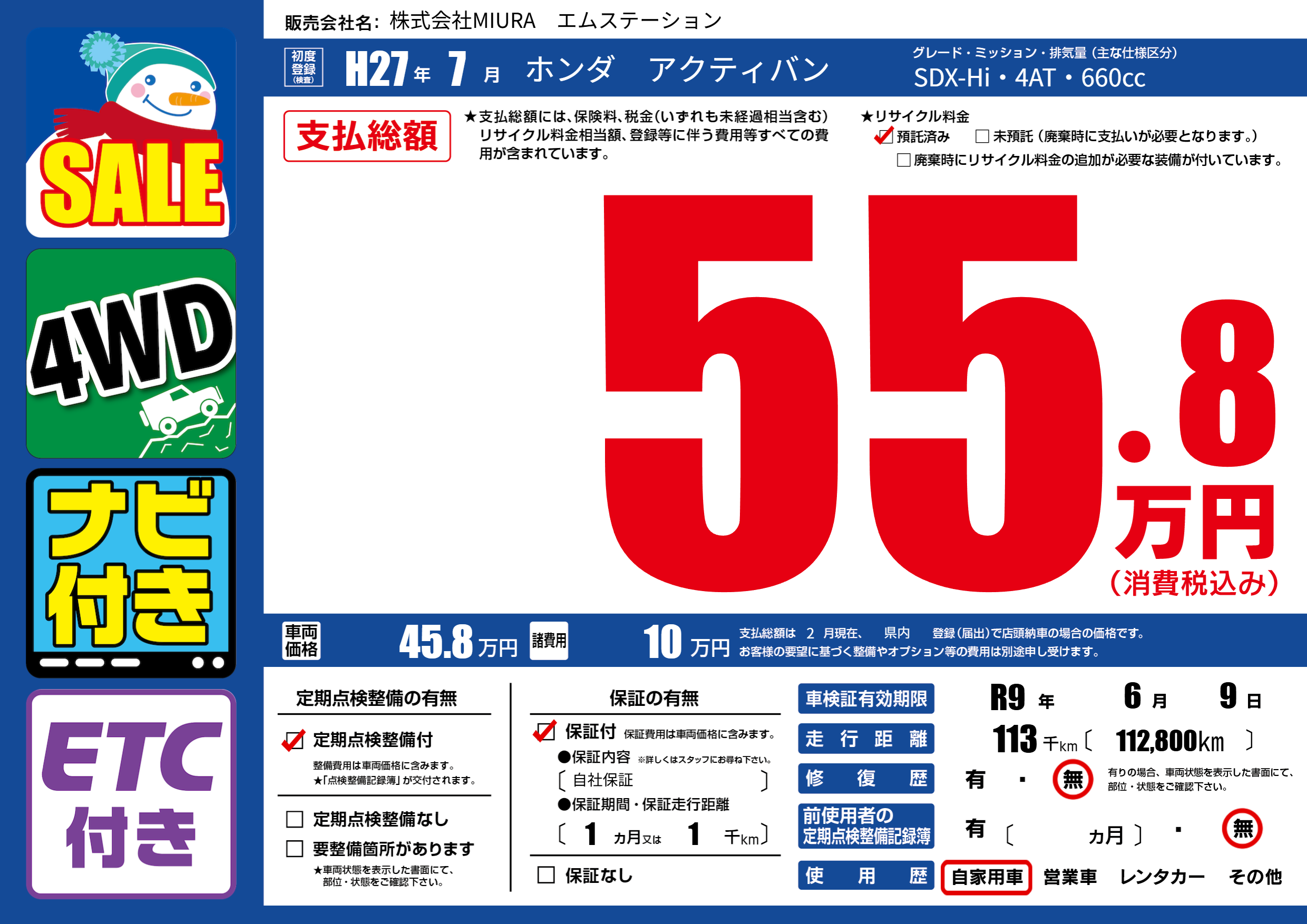 | 車検制限 | R9年 6月 9日 | ||