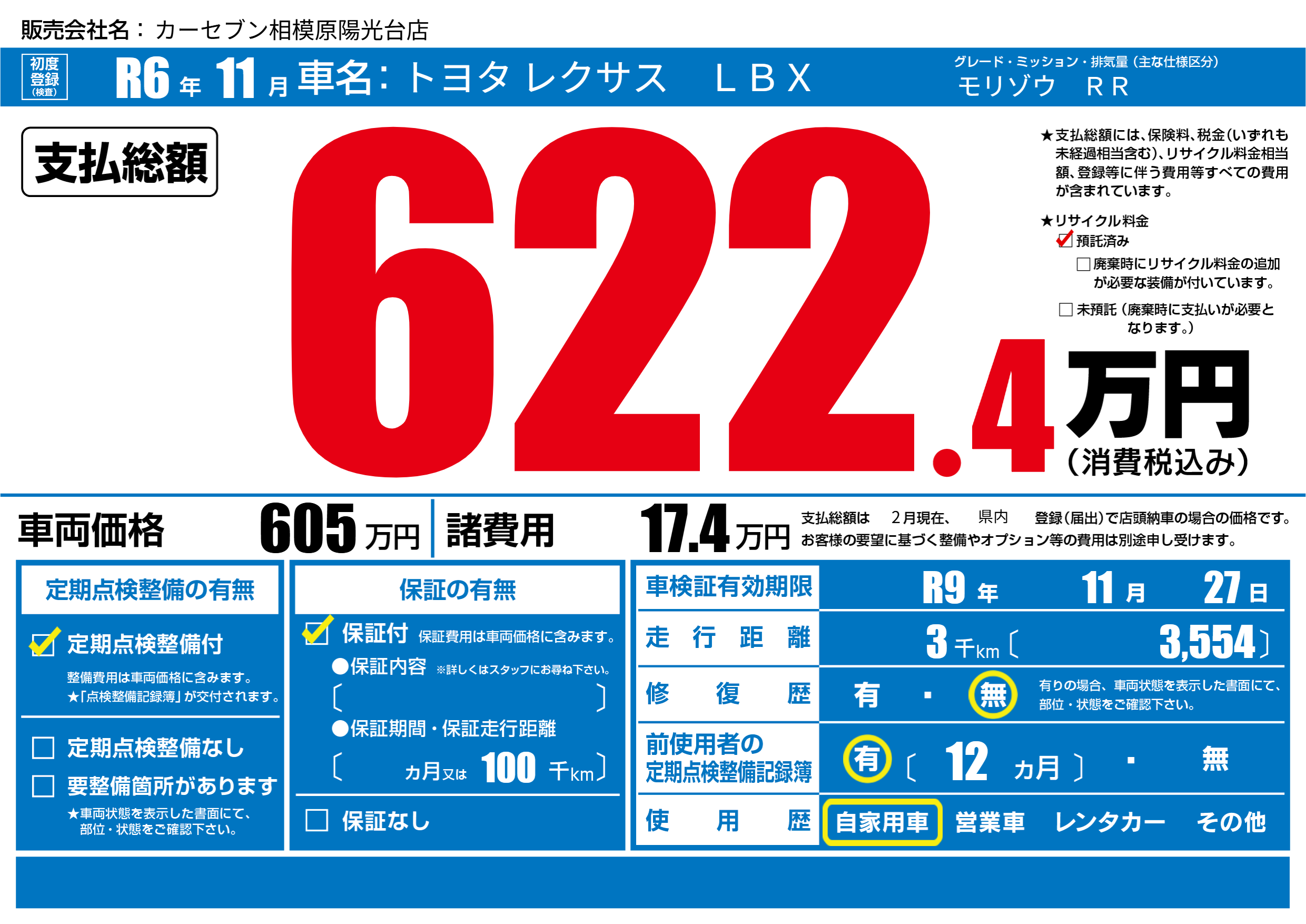 | 車検制限 | R9年 11月 27日 | ||