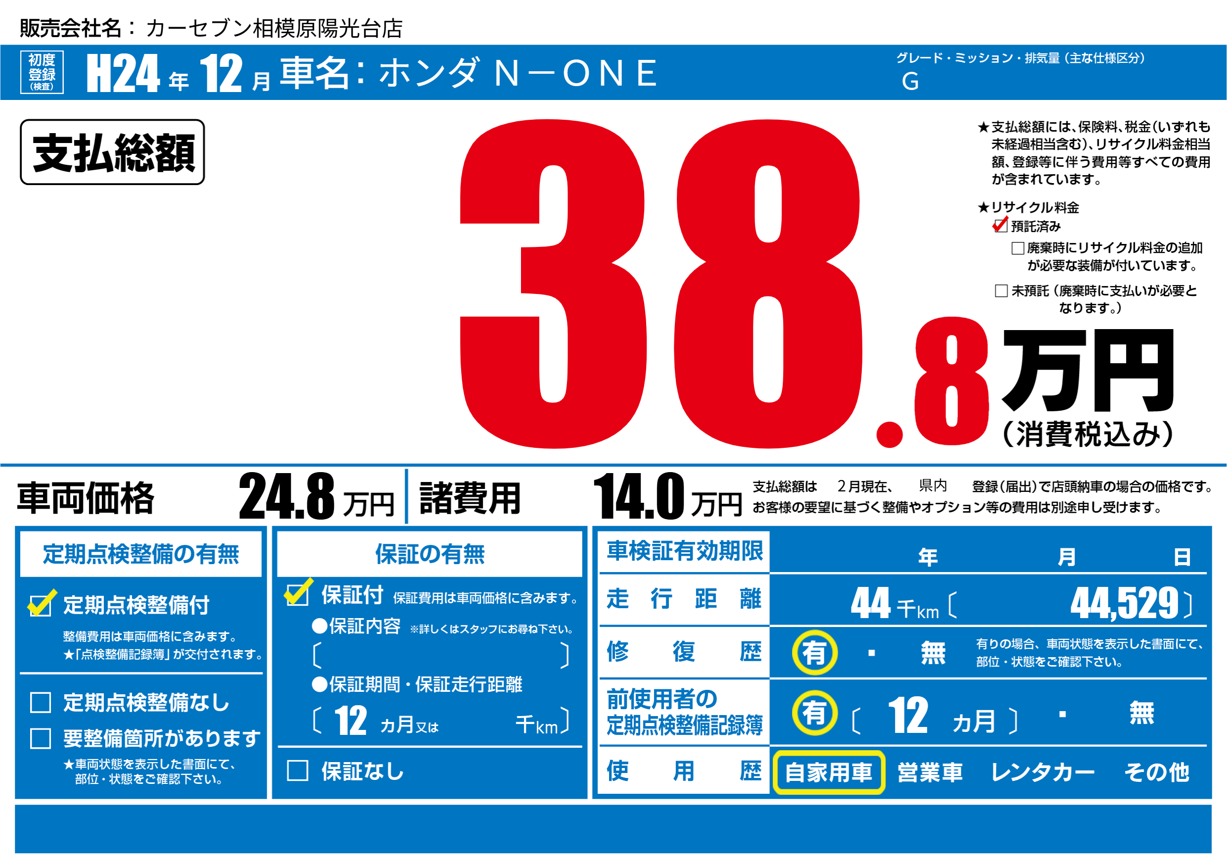 | 初年度登録 | H24年12月 | ||