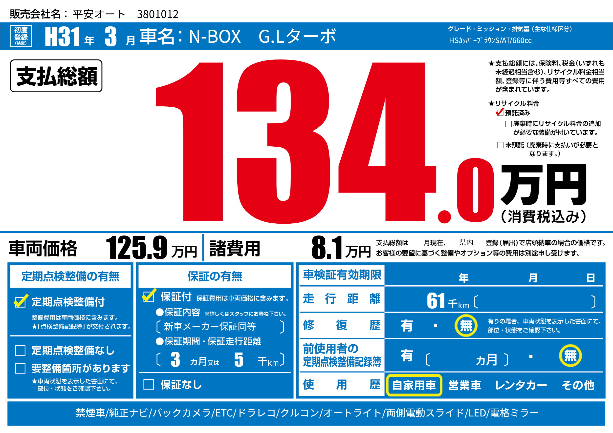 | 初年度登録 | H31年3月 | ||