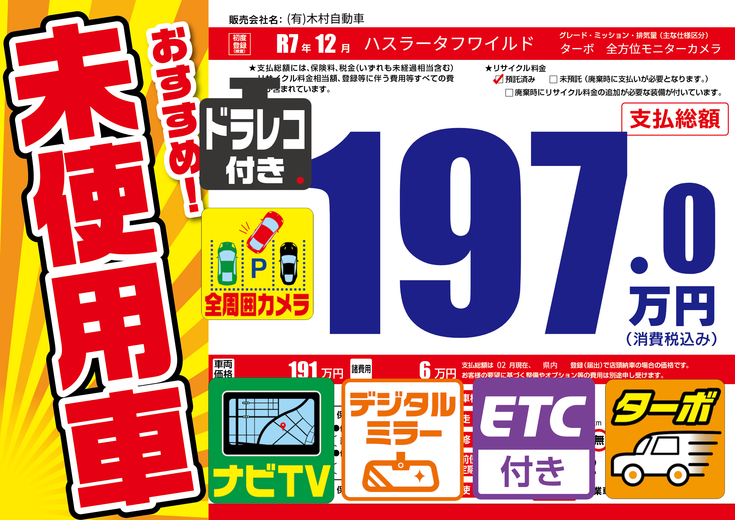| 初年度登録 | R7年12月 | ||