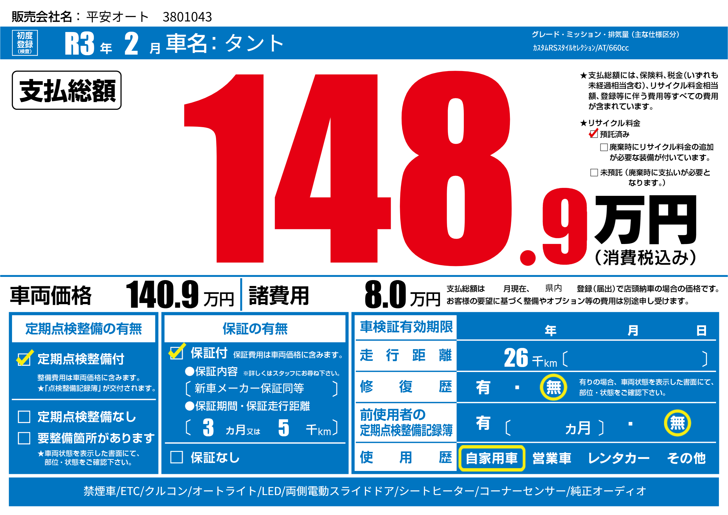 | リサイクル料金 預託済 |