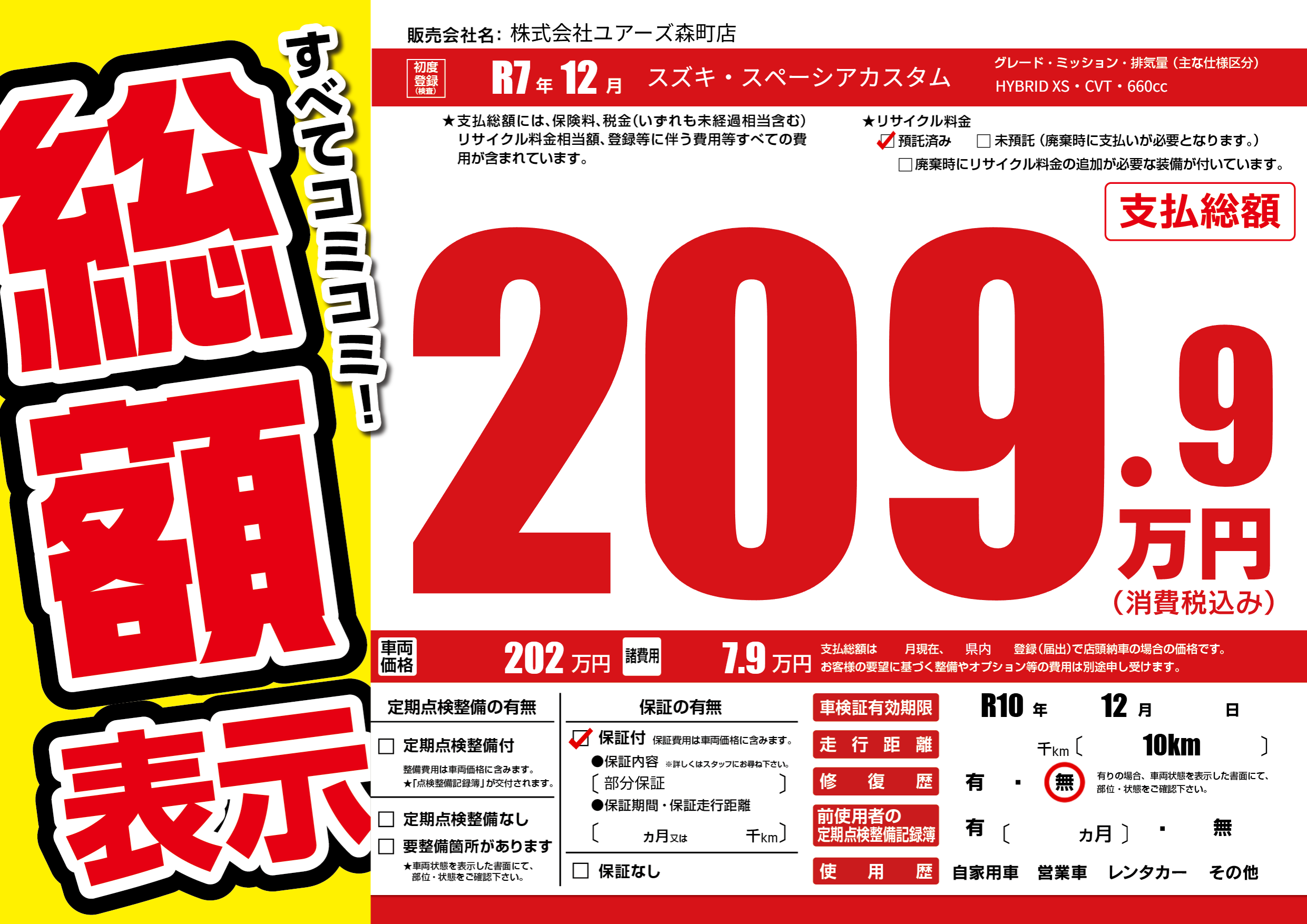 | 走行キロ | - | 初年度登録 | R7年12月 |