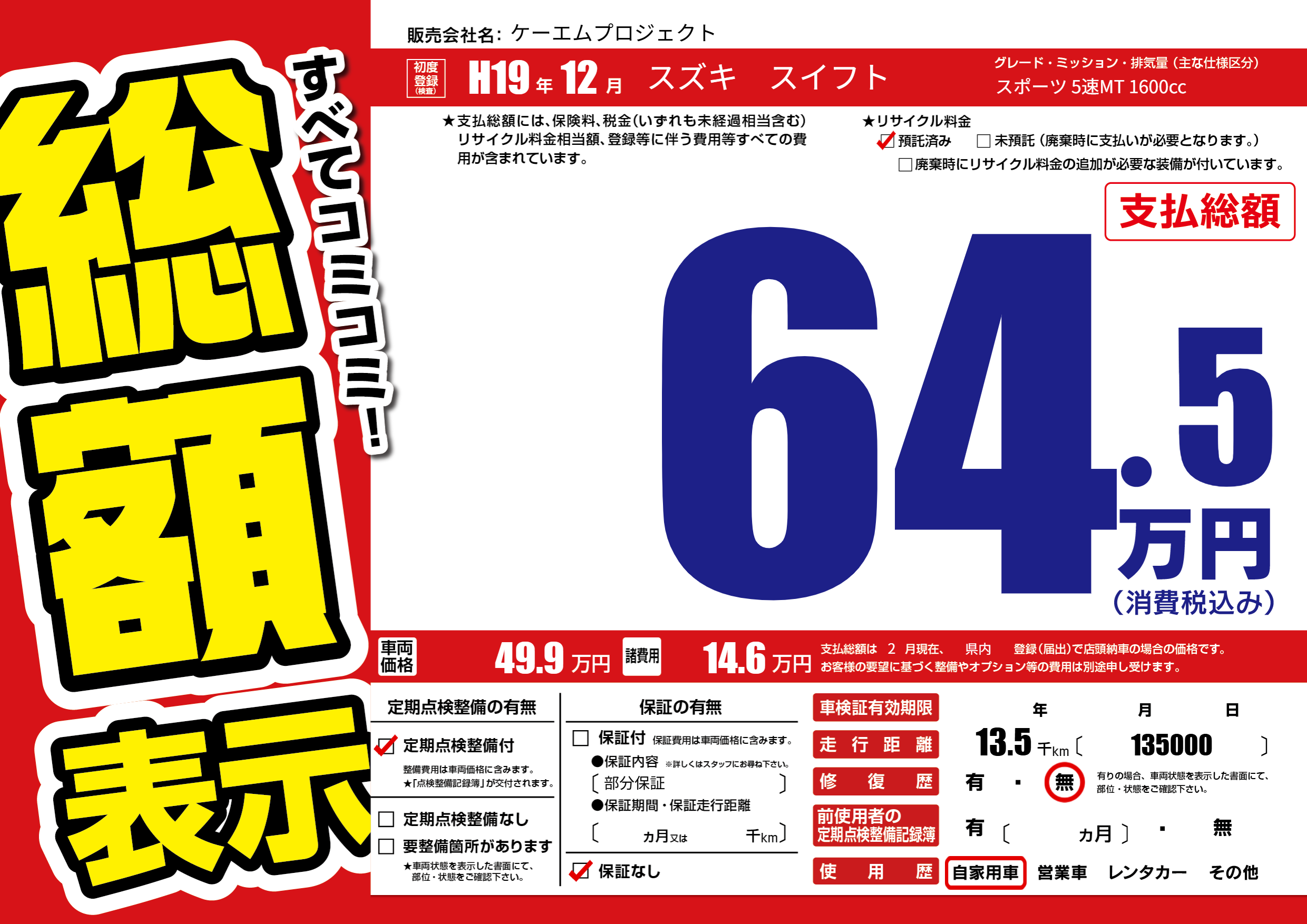 | 定期点検整備 | 定期点検整備あり | ||