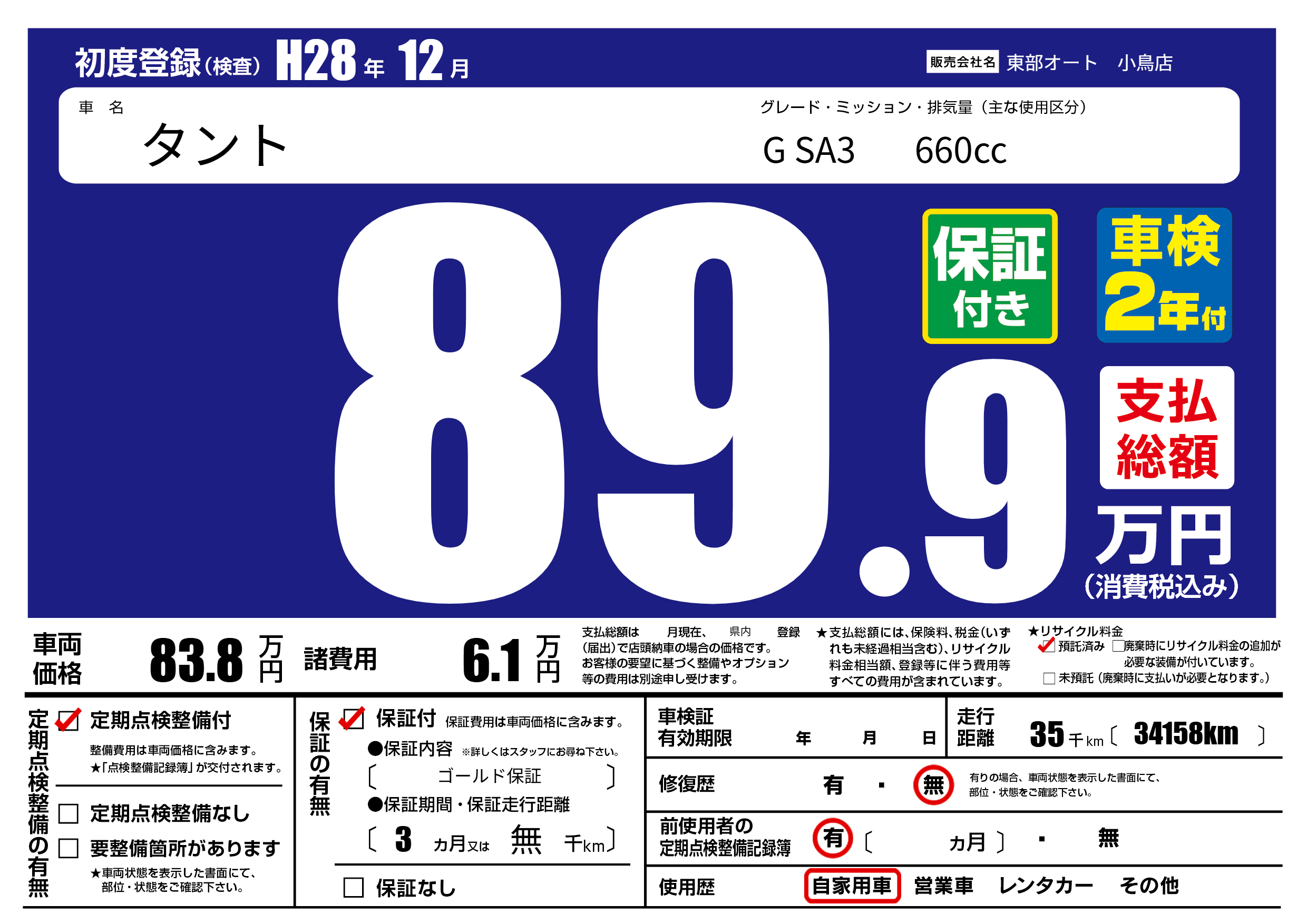 保証付き 保証内容( ゴールド保証) 3ヶ月または(無)千kmまで |