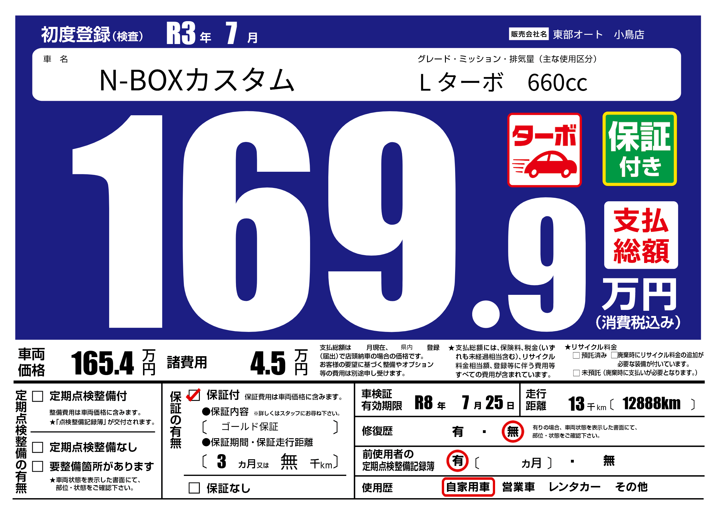 保証付き 保証内容( ゴールド保証) 3ヶ月または(無)千kmまで |
