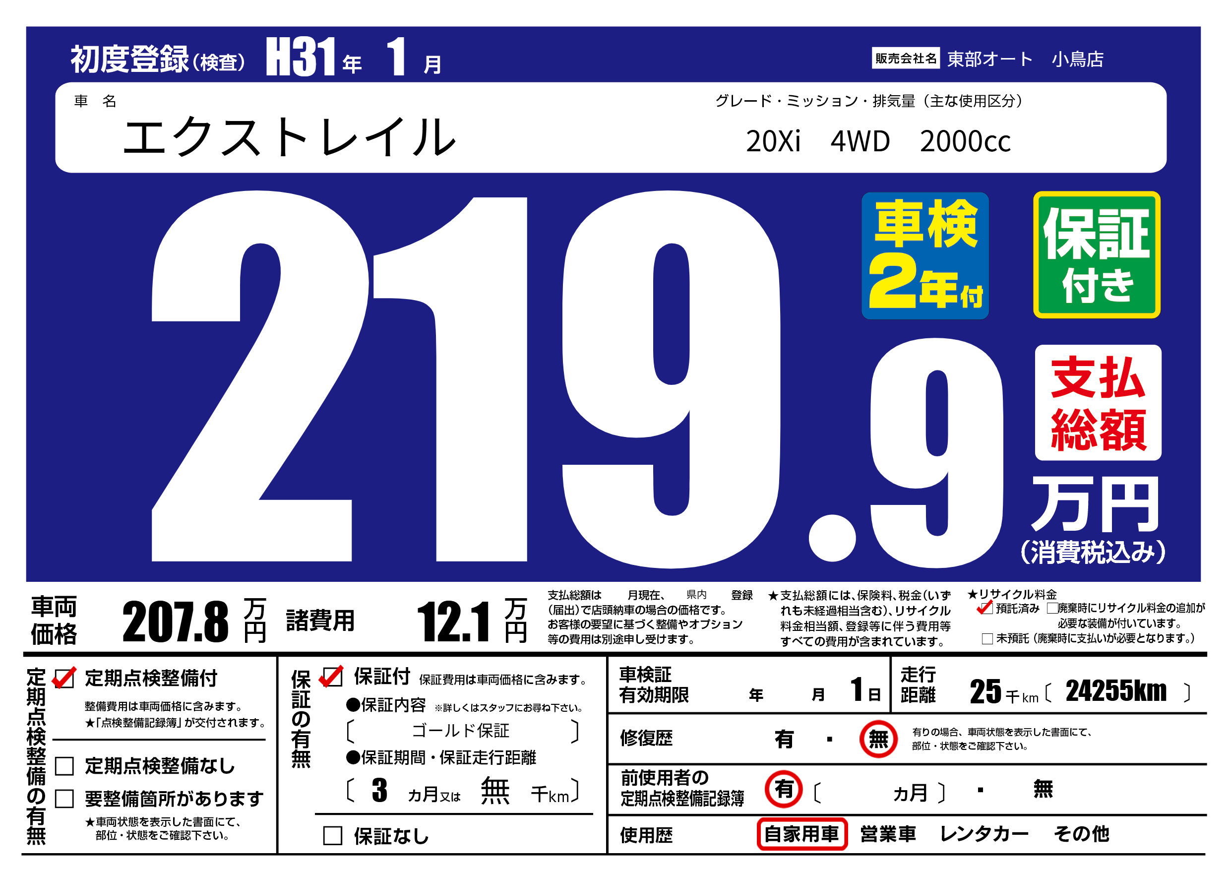 保証付き 保証内容( ゴールド保証) 3ヶ月または(無)千kmまで |