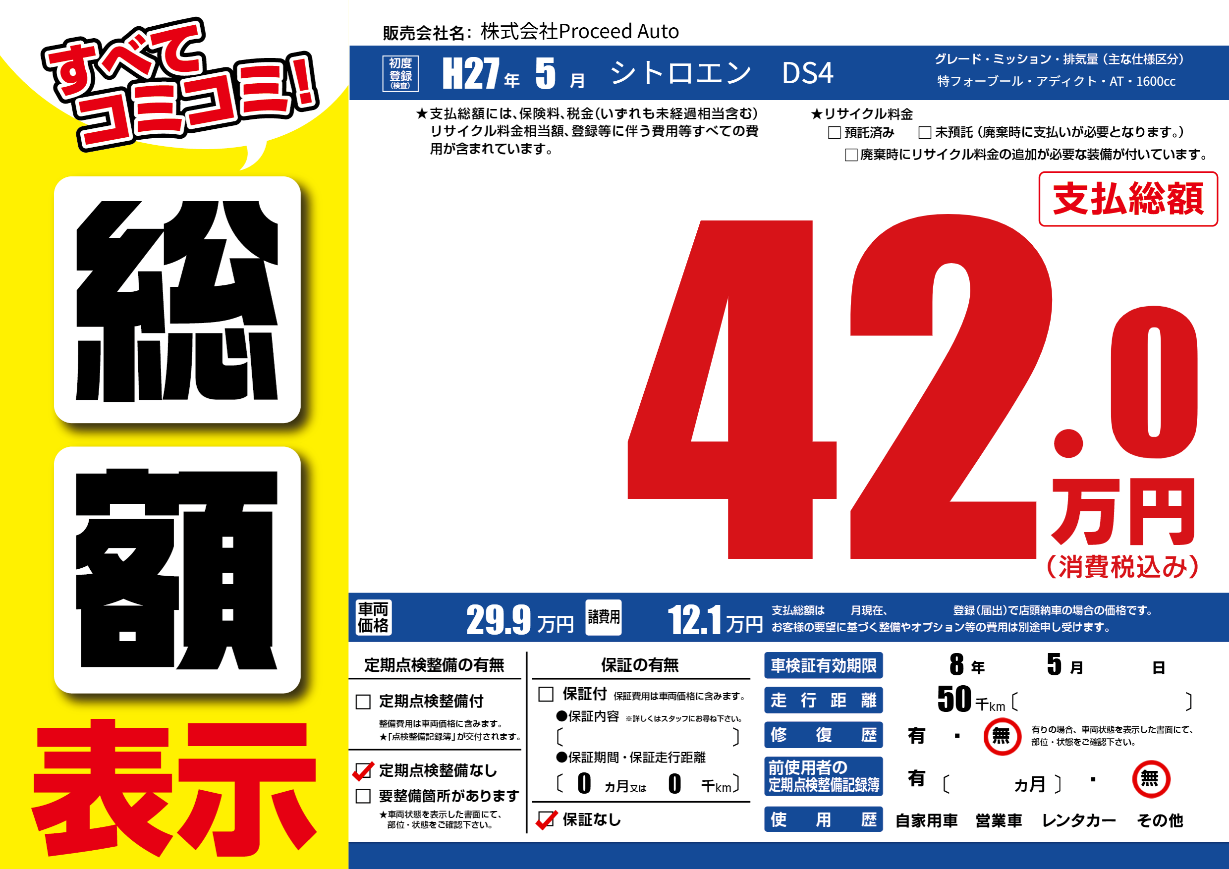 | 車名 | シトロエン DS4 | グレード ミッション 排気量 |