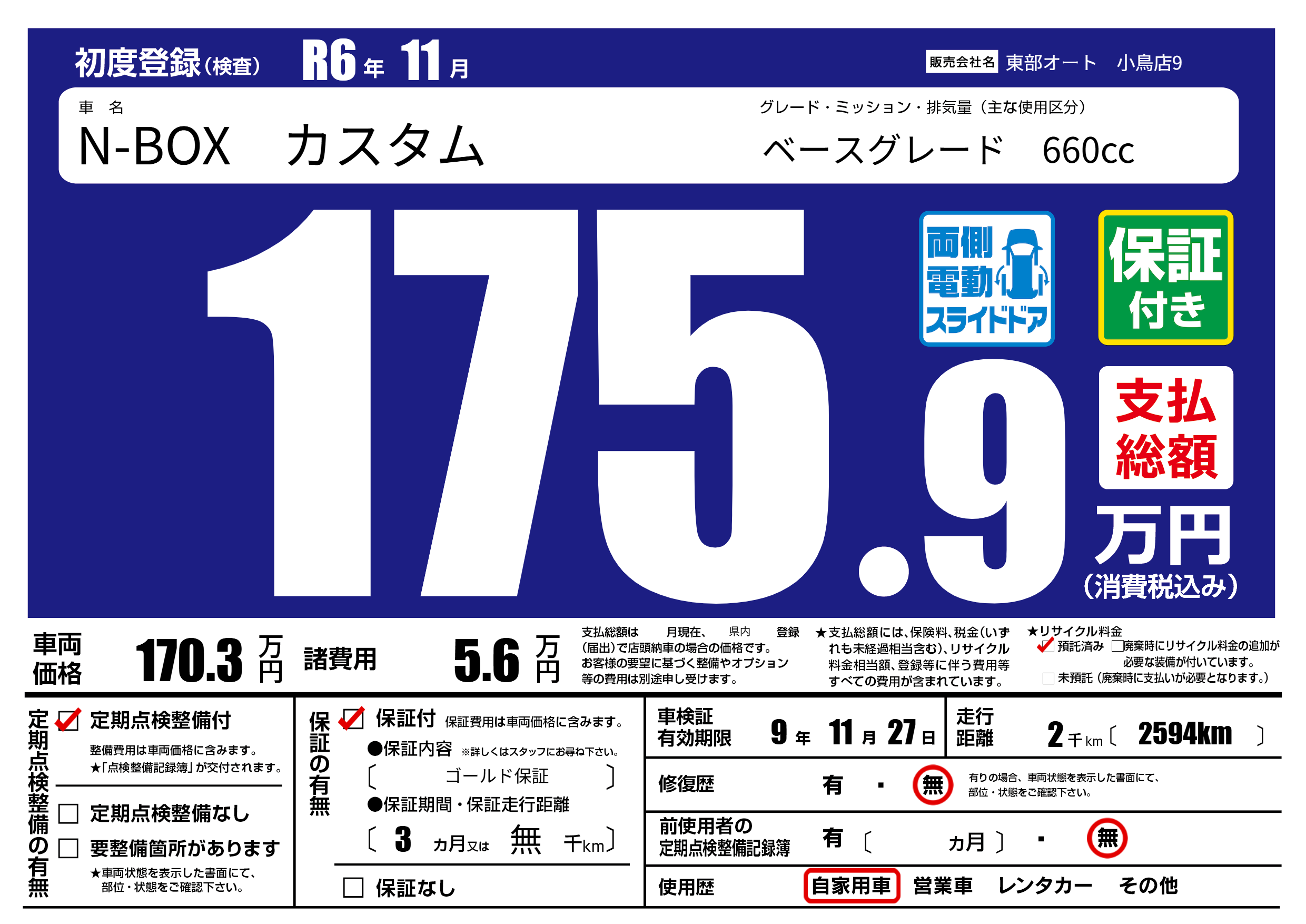 保証付き 保証内容( ゴールド保証) 3ヶ月または(無)千kmまで |