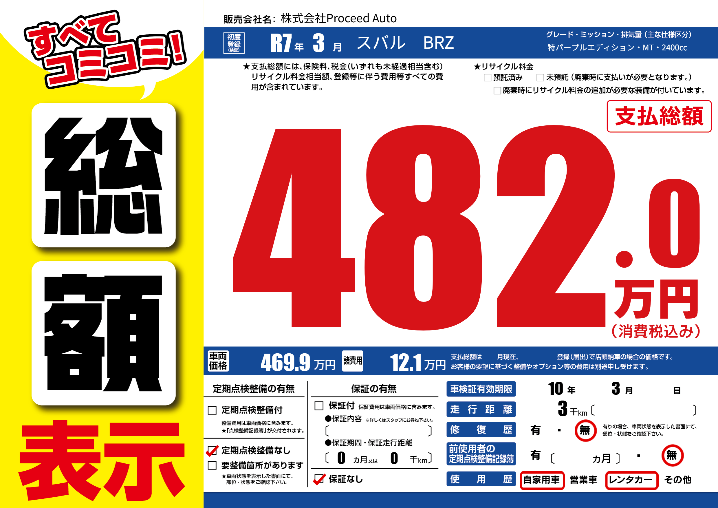 | 定期点検整備 | 定期点検整備なし | ||