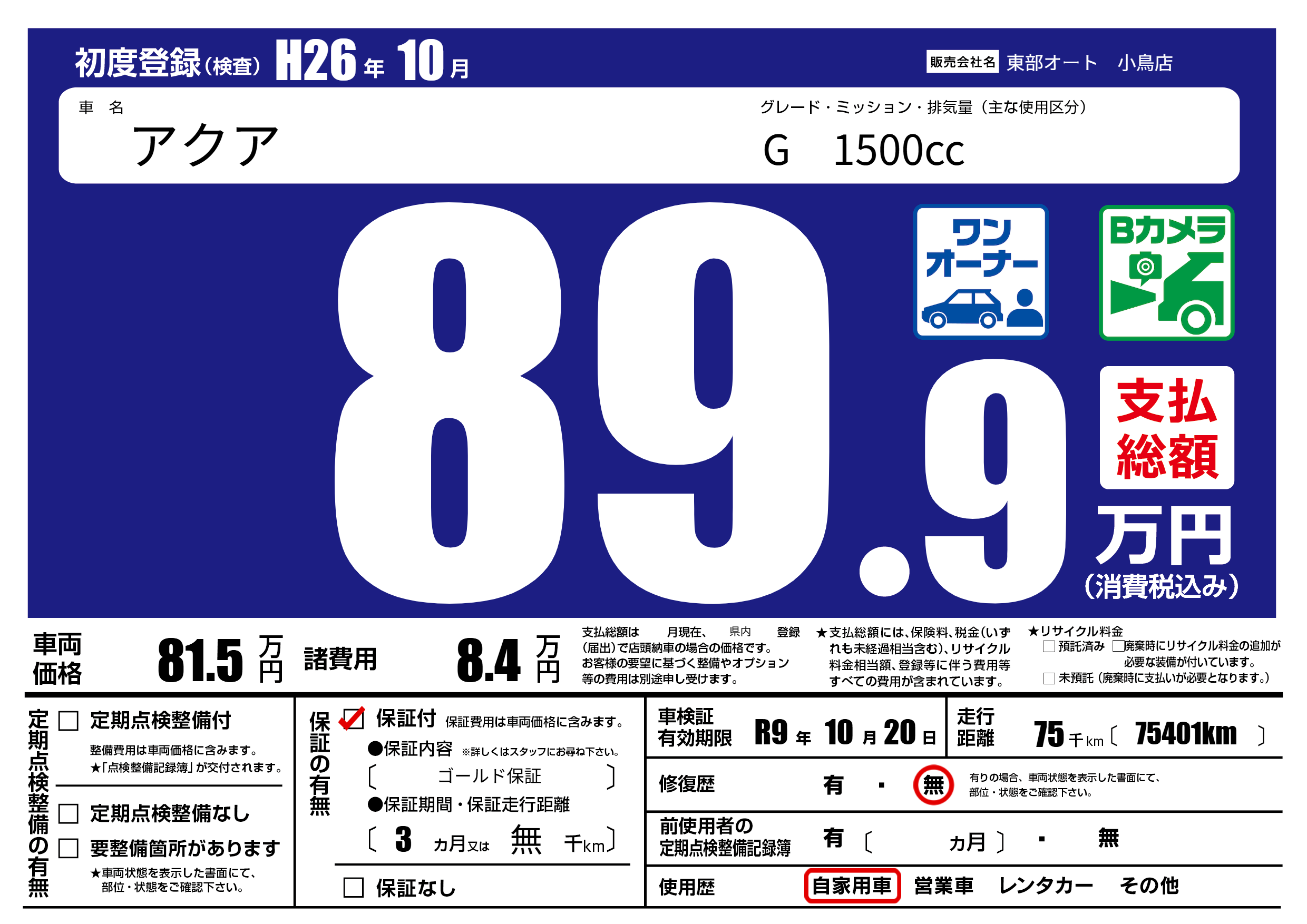 保証付き 保証内容( ゴールド保証) 3ヶ月または(無)千kmまで |