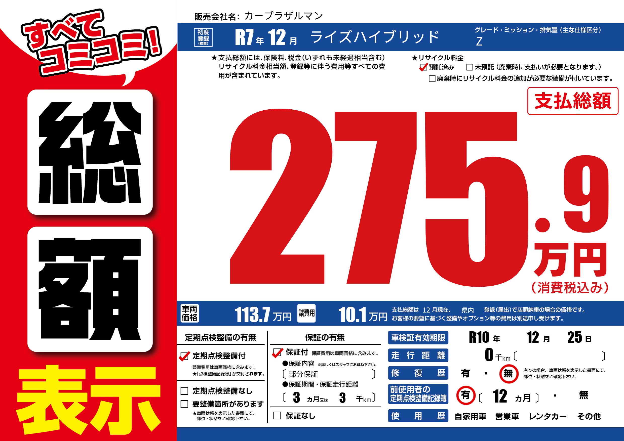 | 初年度登録 | R7年12月 | ||
