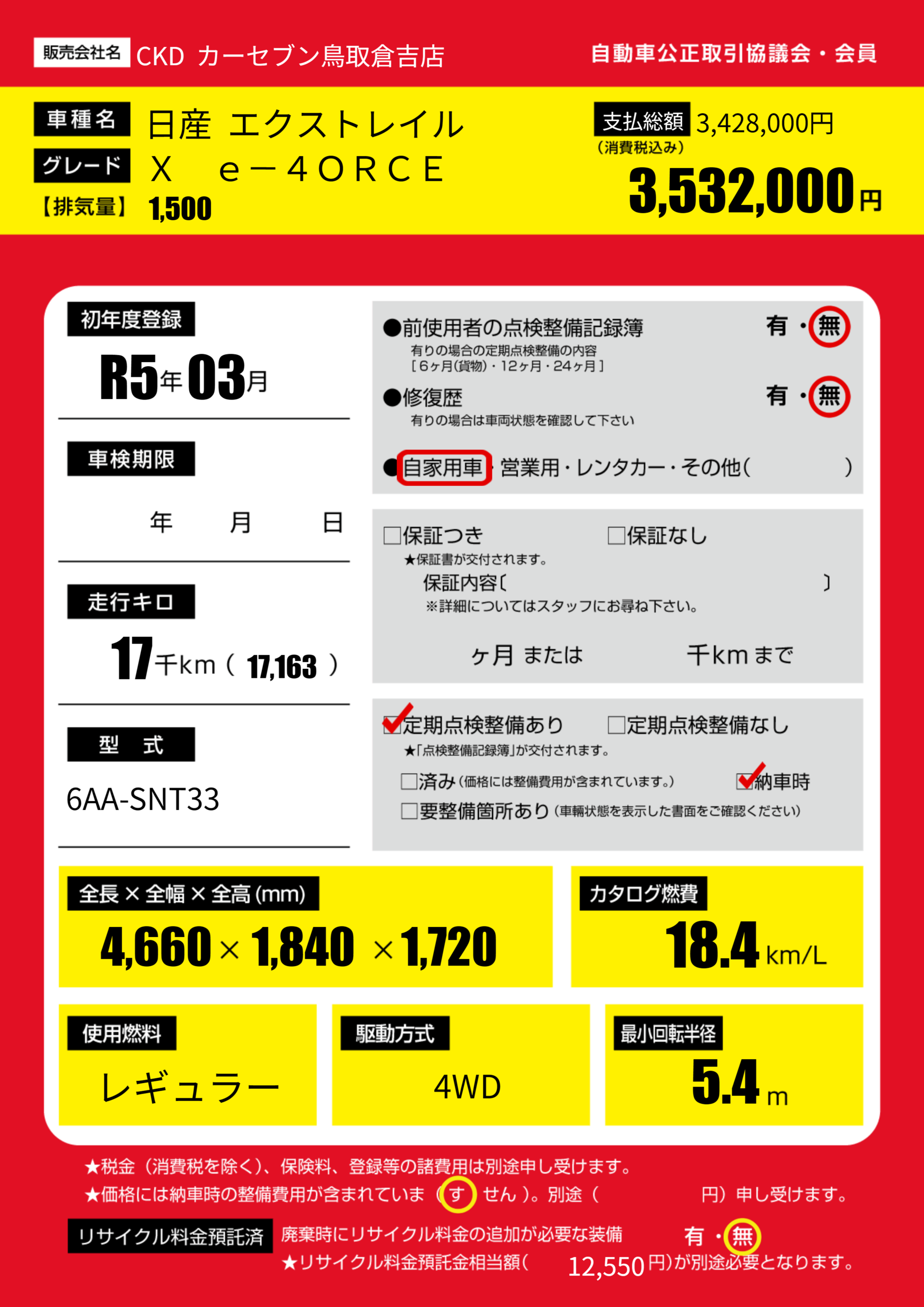 | 初年度登録 | R5年03月 | ||