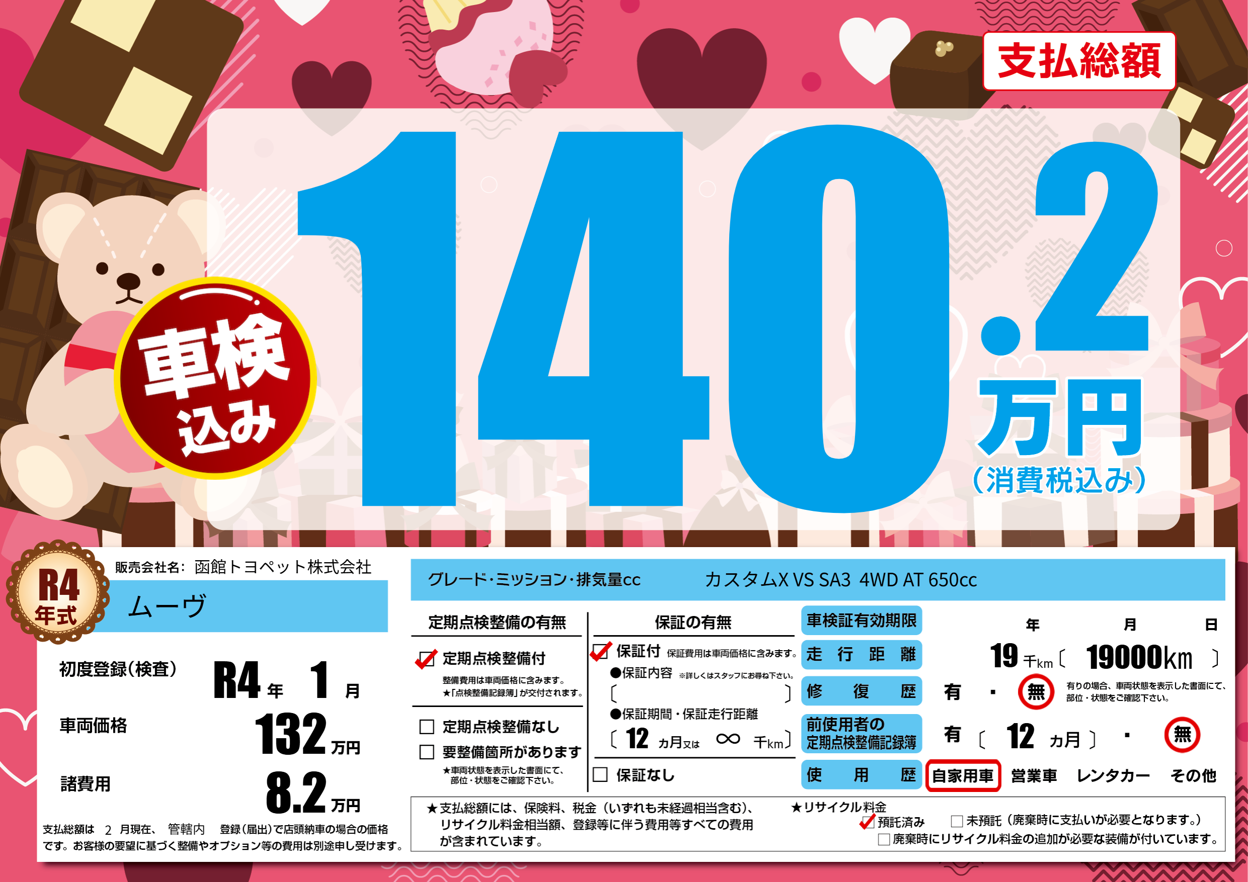 | 走行キロ | 1.9万km | 初年度登録 | R4年1月 |